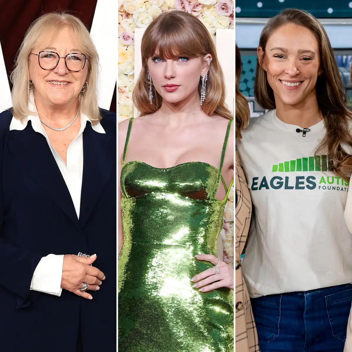 At the Kansas City Chiefs game on Sunday, October 19, Donna — mom of tight end Travis Kelce and former Philadelphia Eagles center Jason Kelce — gave a stylish shout-out to her future daughter-in-law, Taylor Swift, and Jason’s wife of seven years, Kylie Kelce.