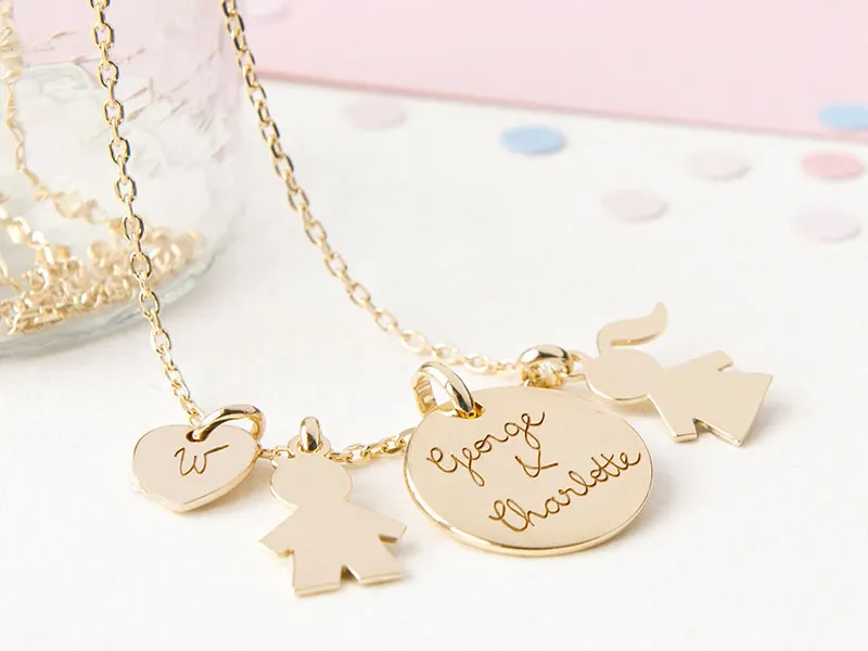 The Merci Maman the Duchess necklace (which you can customize for your family members) is available in gold and silver at mercimamanboutique.com for $129.