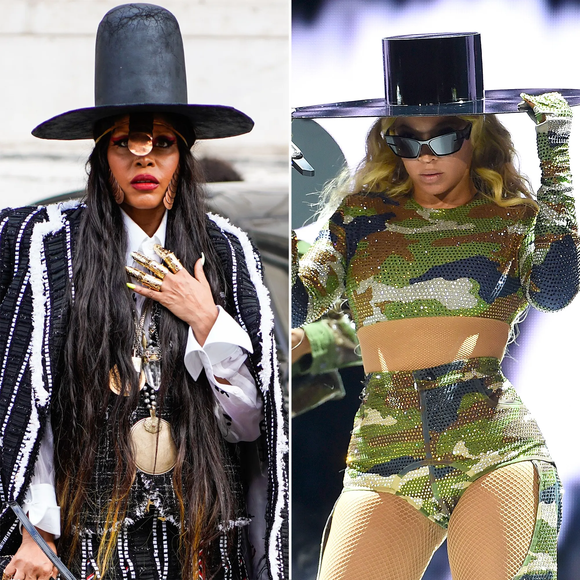 Badu, 52, took to Instagram on Sunday, July 30, to share a photo of Beyoncé, 41, wearing a wide-brim hat while performing at her Renaissance show in East Rutherford, New Jersey on Saturday, July 29. “Hmm,” Badu wrote over the photo before sharing a pic of herself in a similar accessory. “I guess I’m everybody’s stylist,” Badu wrote alongside the snap, appearing to throw shade at Beyoncé.