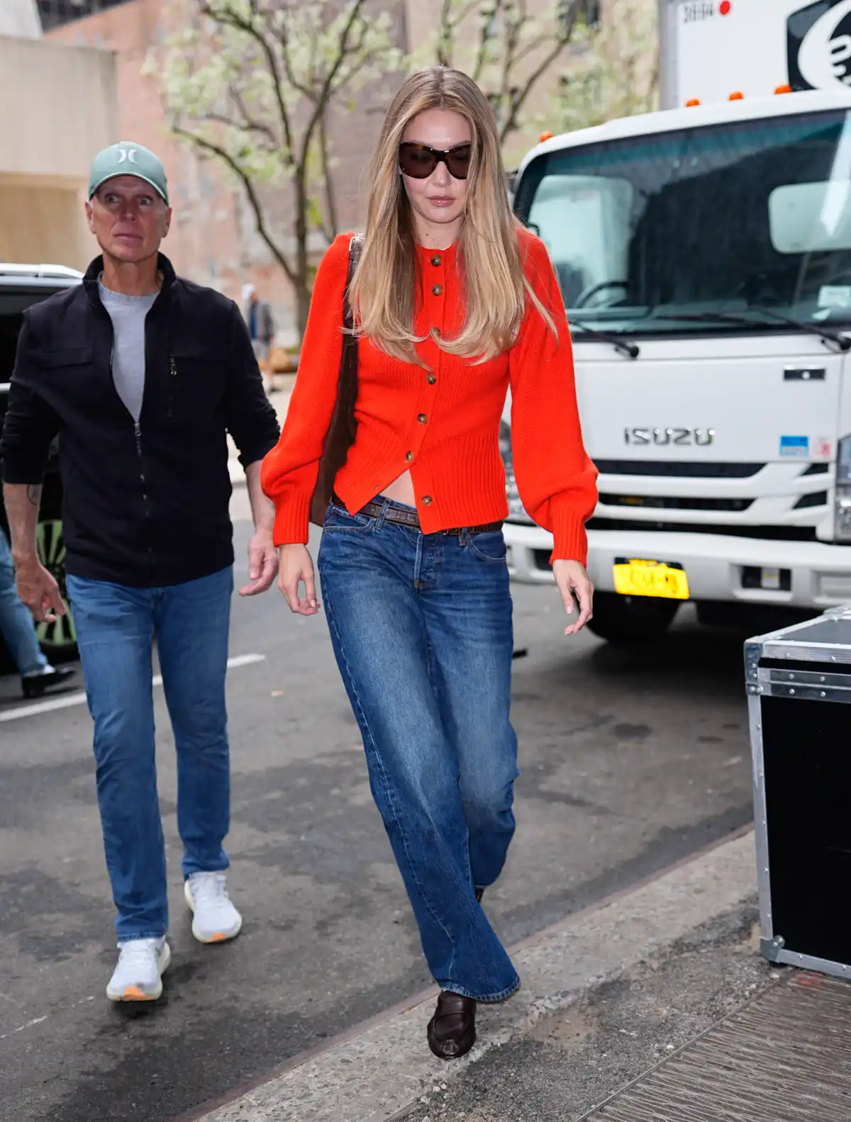 Gigi Hadid just made a case for swapping your usual neutral layers for something a little bolder this spring. The model stepped out in New York City on April 13 in a bright red cardigan, styled with dark-wash jeans, brown loafers and a suede bag. Her look proves that a single statement piece can completely transform an otherwise simple outfit. It’s that effortless, ‘threw it on and it works’ energy she’s known for — and this time, it’s all about the cardigan.