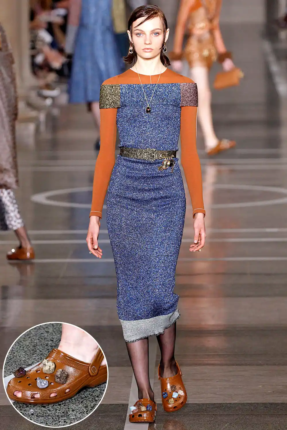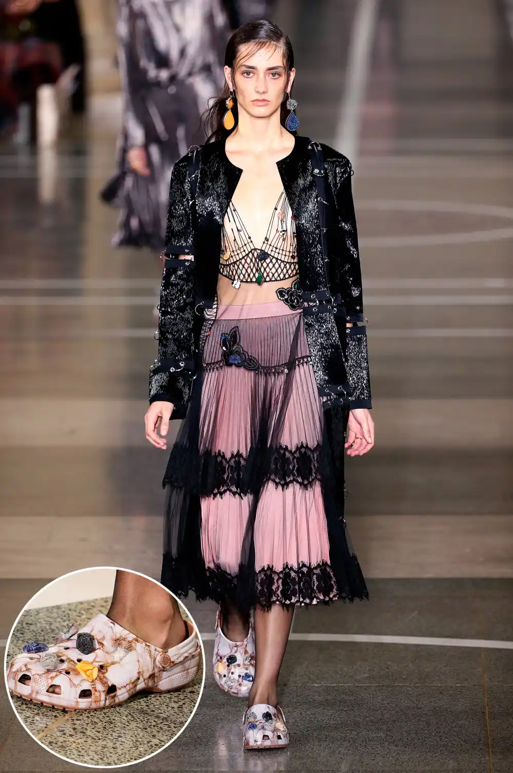 What is going on today?! Brangelina splitting isn’t the only thing that’s rocked our world. Over at London Fashion Week, Christopher Kane outfitted models in bejeweled Croc shoes for his Monday, September 19, show.