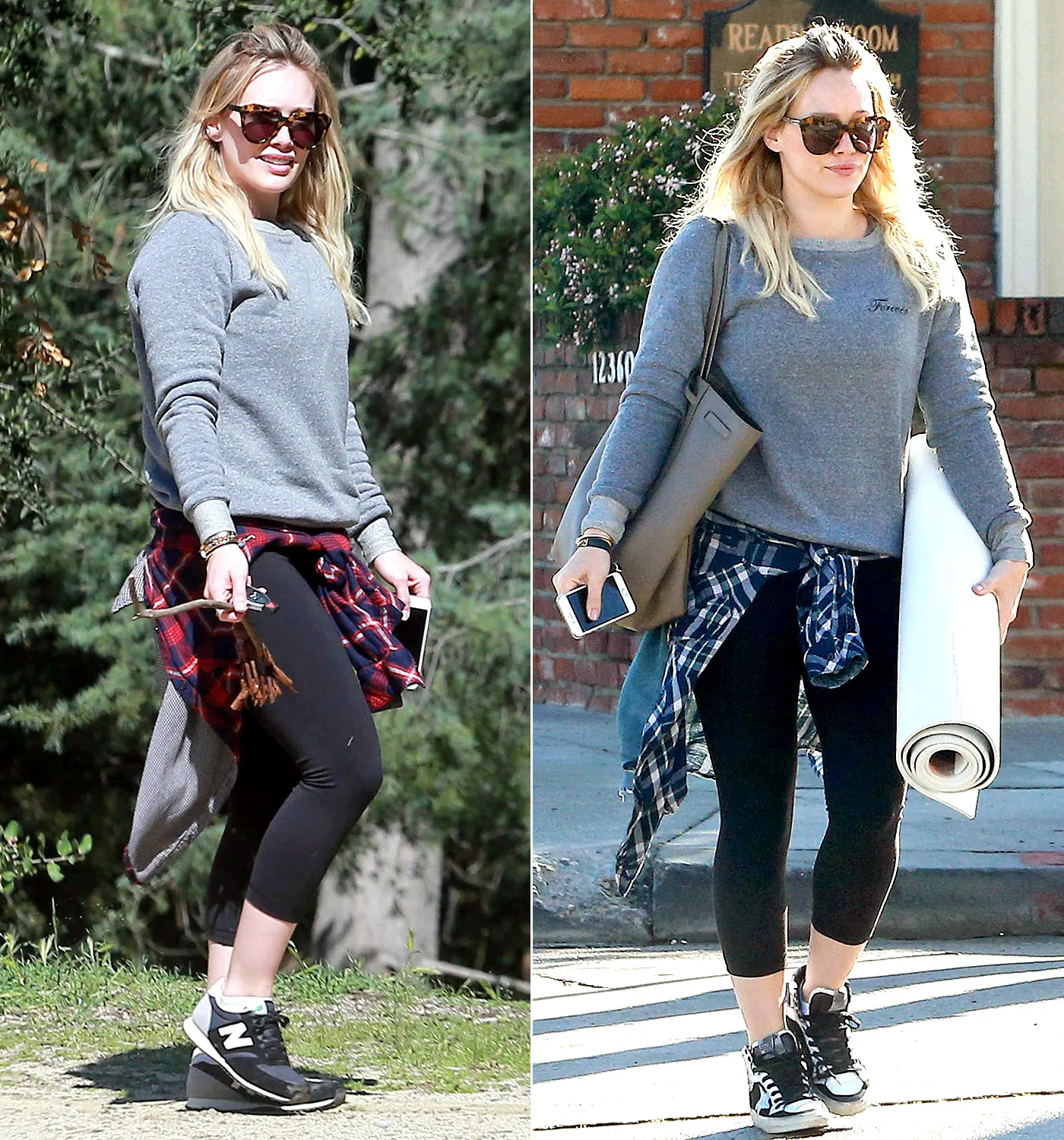 Duff, 27, whose new TV Land show, Younger, is set to premiere on March 31, has clearly embraced the grunge street style trend, rocking two plaids in one day alone on Tuesday, March 3. (She wore a gray tartan first to yoga class, then switched to a red print for a hiking adventure with her 2-year-old son, Luca.)