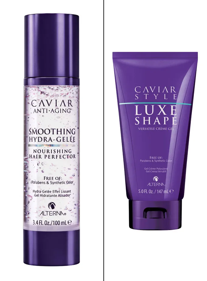 Alterna Haircare Caviar Moisture Smoothing Hydra-Gelée Nourishing Hair Perfector, $28, alternahaircare.com; Alterna Haircare Caviar Style Caviar Style Luxe Shape Creme Gel, $28, alternahaircare.com