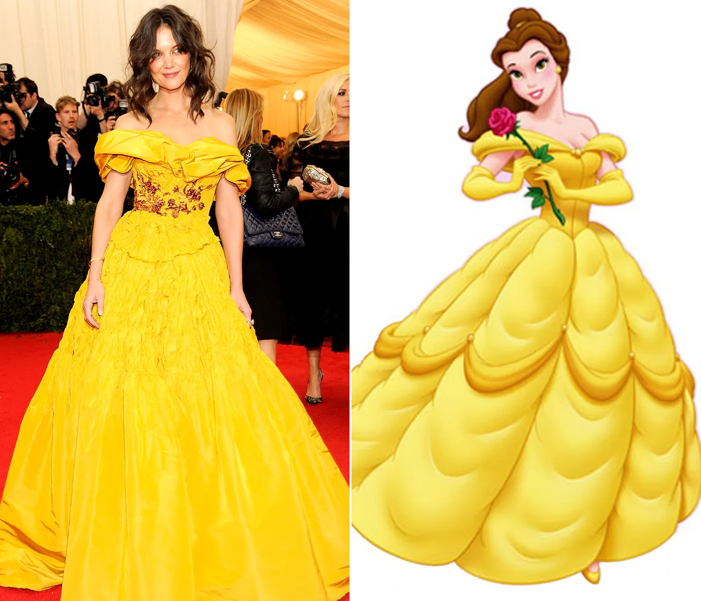Katie Holmes was the Belle of the Ball on May 5 at the Metropolitan Museum of Art's Costume Institute Gala in New York City! The brunette beauty, 35, wore a canary yellow off-the-shoulder Marchesa gown, which immediately sparked comparisons to the iconic Disney princess Belle from Beauty and the Beast.