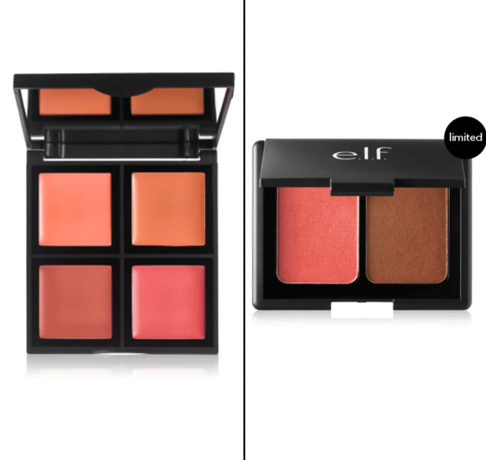 From left: e.l.f. Cream Blush Palette ($6, elfcosmetics.com), e.l.f. Aqua Beauty Blush & Bronzer ($6, elfcosmetics.com).