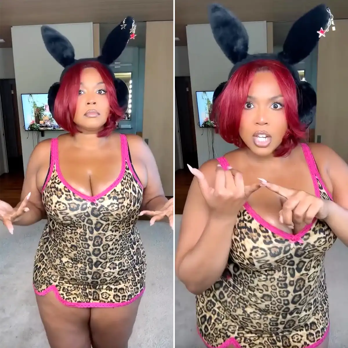 The music artist, 37, posted a new video dressed in a slinky pink-trimmed number and black fuzzy bunny ears on Sunday, September 7, confidently mouthing the words to her to track “IDGAS” from her latest mixtape, My Face Still Hurts from Smiling.