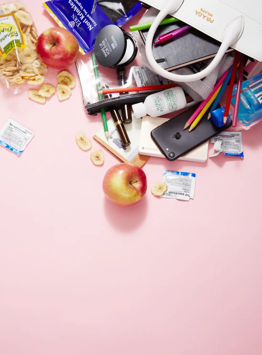 “I have a snack or two in my bag for the girls. My oldest daughter is a fan of Nori seaweed. And they are apple lovers, so I’ll always have one and a bag of dried bananas for the baby.”