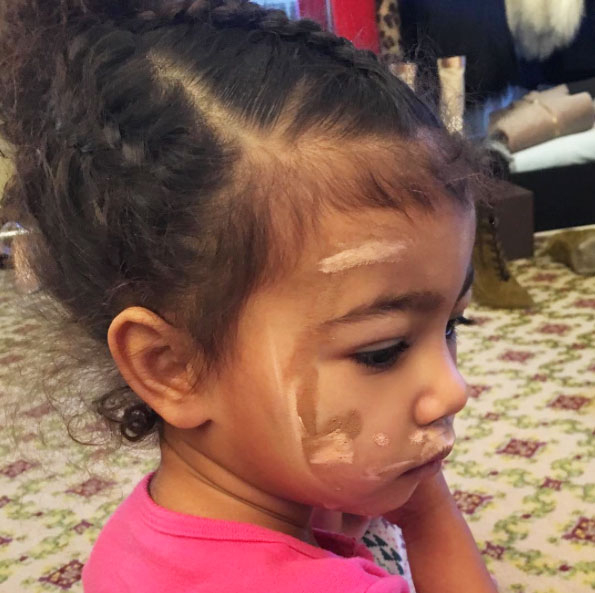 Her mother’s daughter! North West may be just 2 years old, but that didn’t stop her from test-driving her mom’s makeup trick of choice: contouring.