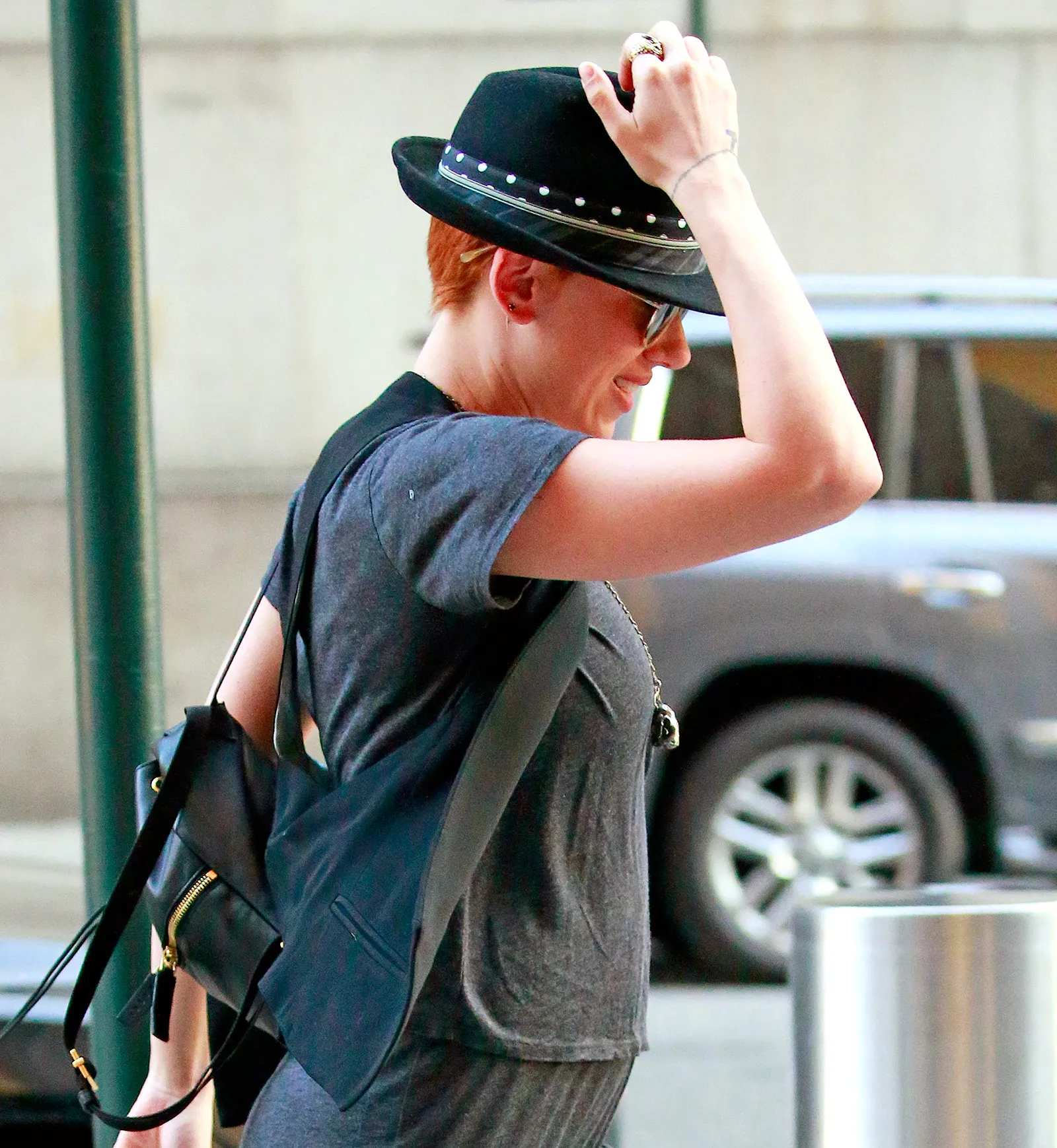 Though she attempted to hide her tresses beneath a fedora cap, 30-year-old Johansson’s buzzed cut still peeked out, proving that she did indeed color her naturally blonde hair the same cinnamon shade she rocks while in character as Avengers superhero Natasha Romanoff (aka Black Widow).