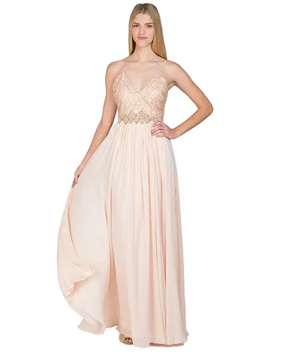 As seen in the drama-filled preview for the finale, Fletcher, 25, will don the Badgley Mischka Web Lace Silk Runway Evening Gown ($1,190, badgleymischka.com). The peach-hued confection boasts ultra-femme elements, including an embellished bodice stitched with gold threading, dainty straps and a lightweight skirt. But it has a little steam, too, thanks to a deep V-neckline and an open back.