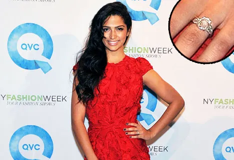Forty-four days after Matthew McConaughey popped the question, Camila Alves finally showed the world her engagement ring at QVC's New York Fashion Week runway show Wednesday.