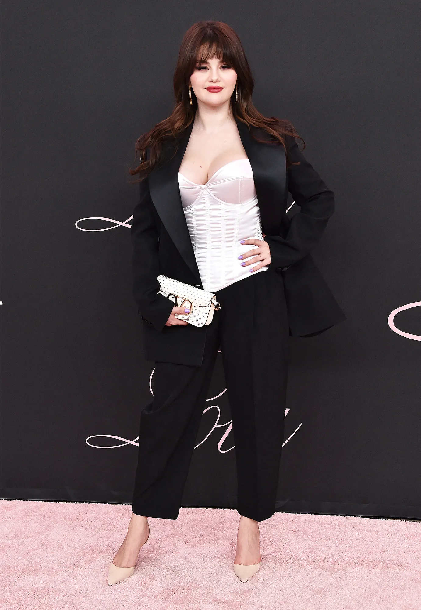 Gomez, 31, stepped out at the Saturday, February 3, premiere of Lola at Los Angeles’ Regency Bruin Theater. She stunned in a black pantsuit with a silk, white corset underneath.