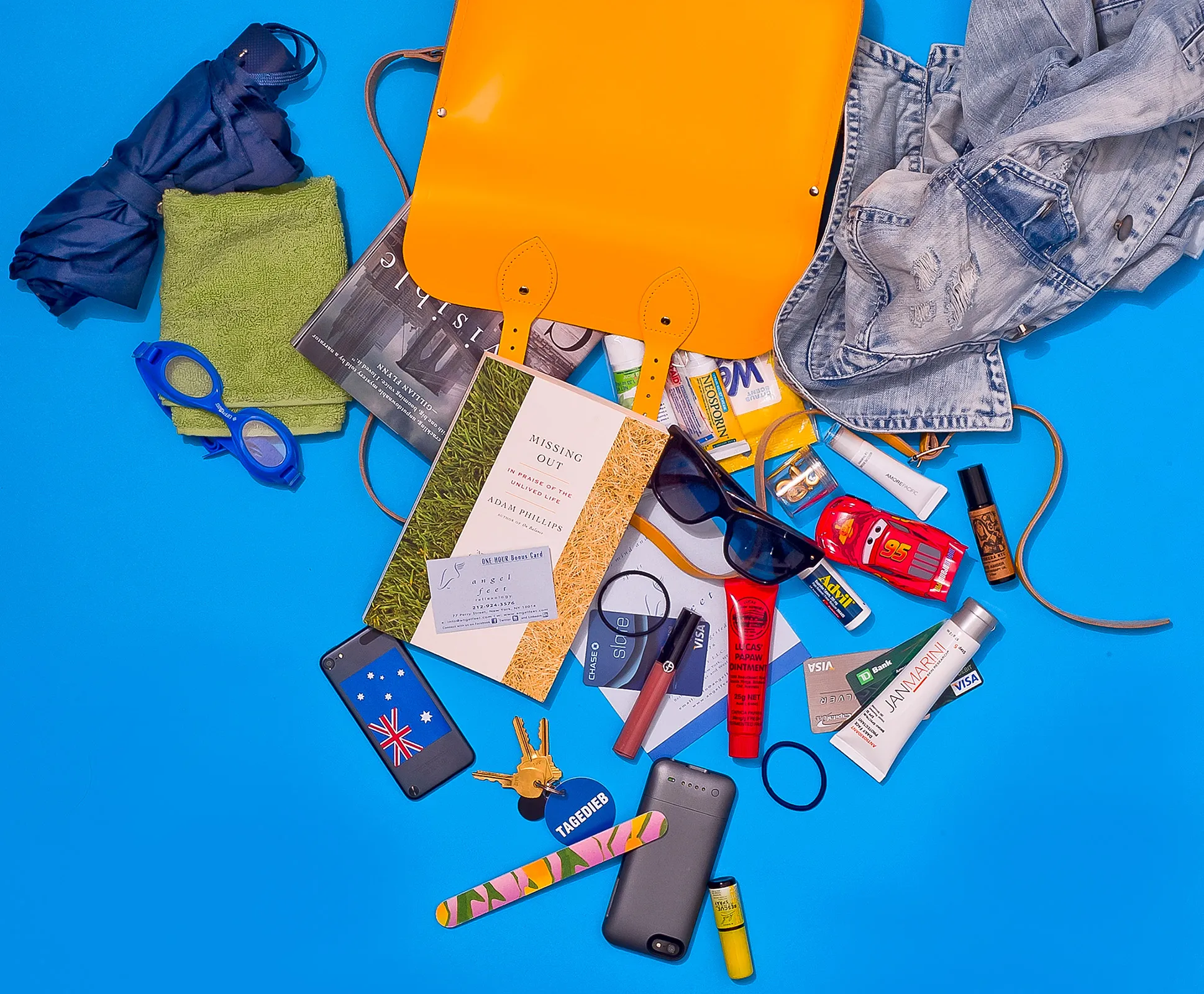 “Since it’s bloody boiling outside, and every building is over-air-conditioned, I carry around a vintage denim jacket. It’s basically threadbare, but I love it!”
