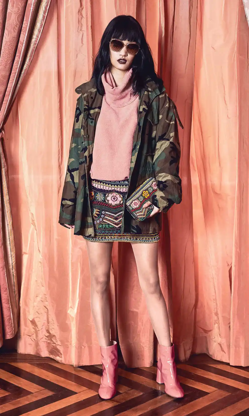 She’s a huge fan of the whimsical brand and couldn’t wait to dish her favorite elements of the fall 2017 collection. “I’m really into all of this blush, the dusty pink that I keep seeing around. I love the combination of a deep forest green and blush pink.” And everyone wants Moore!