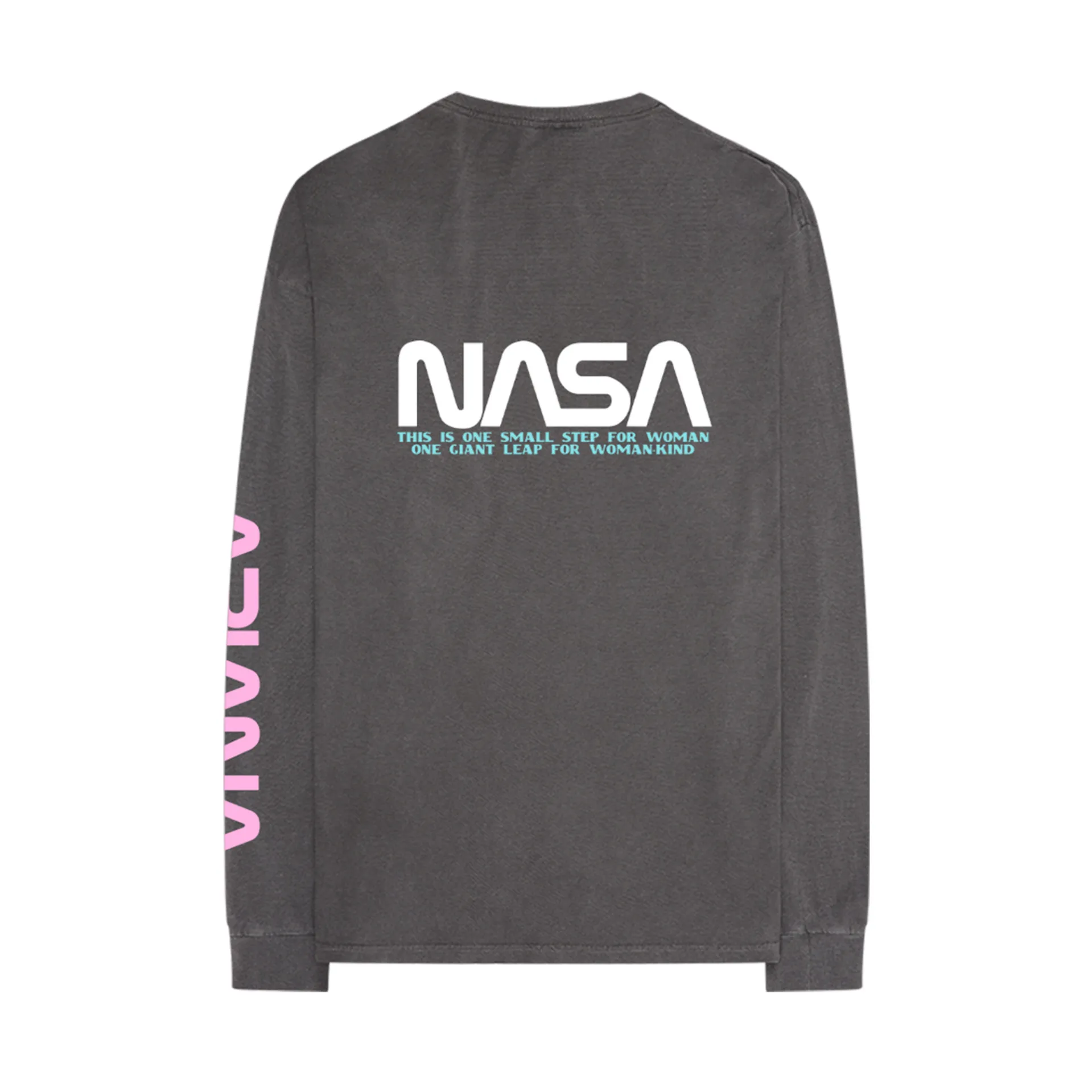 The clothing items feature some of the #GirlPower lyrics from the track like, “This is one small step for woman / One giant leap for woman-kind,” while the galactic graphics and fonts pay homage to the space agency.