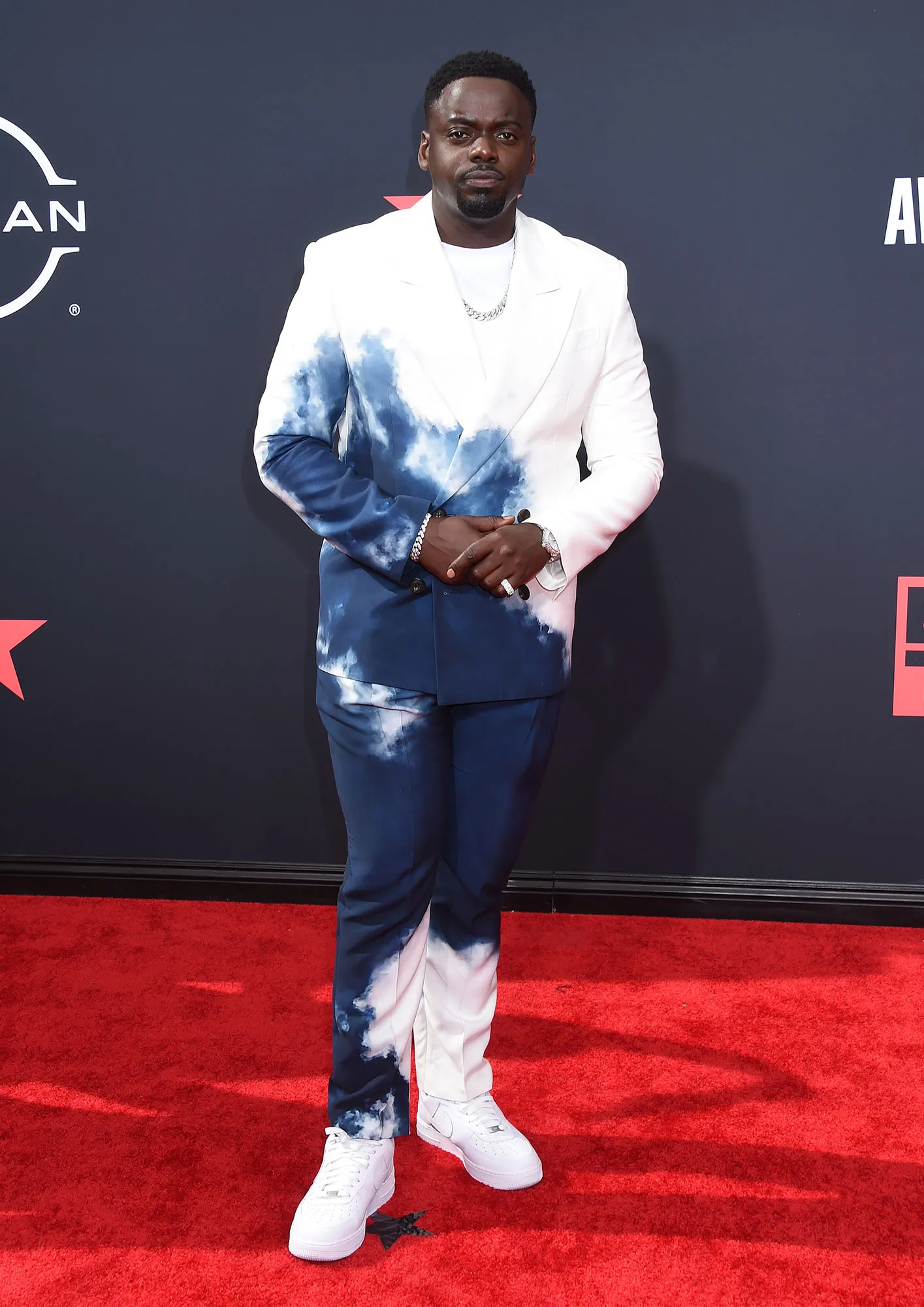 The men also slayed the carpet. Daniel Kaluuya looked vibrant in a blue and white, cloud-like suit with sneakers. Blxst looked dapper in a pink silk shirt and blush pants. French Montana also looked summer-ready in a multicolored button up and purple plants.