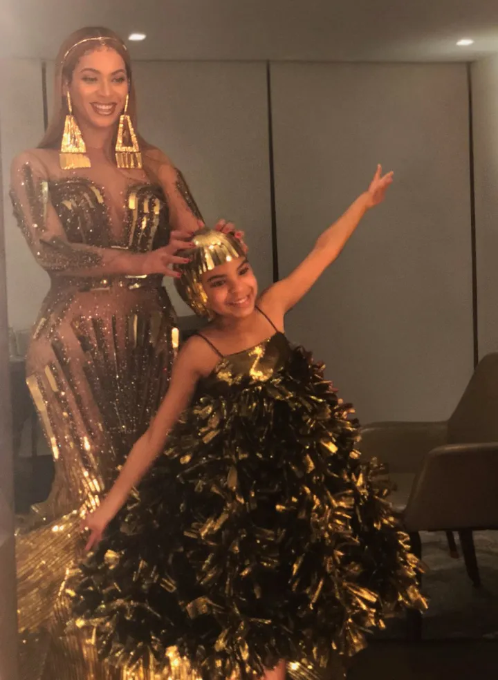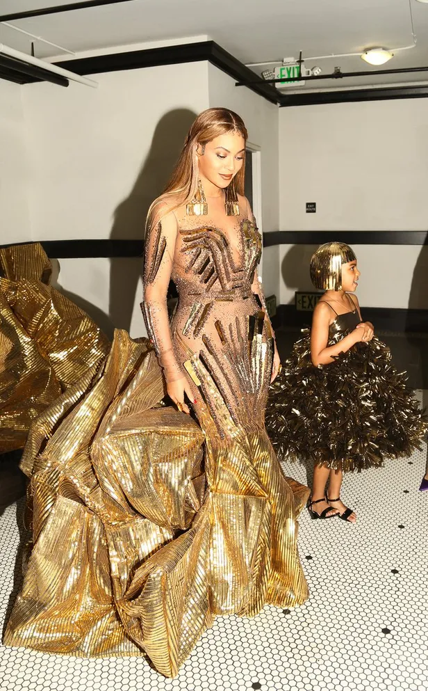 Beyonce and Jay-Z made it a family affair over the weekend, stepping out for the 2018 Wearable Art Gala sponsored by Kim Crawford Wines in Los Angeles with six-year-old daughter Blue Ivy Carter in tow — and Bey gave the world a full view of the glamour with a series of shots posted to her Instagram account late Monday night. To say they brought the high fashion drama would be an understatement. Both mother and daughter were gorgeous in bespoke gold gowns by Falguni & Shane Peacock and Annakiki respectively at the glitzy event, where Blue even tried to bid $19,000 for a painting of a young Sidney Poitier before dad Jay intervened. Not to worry though, she went home with a $10K Samuel Levi Jones piece instead.