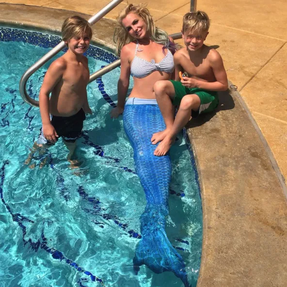 “My favorite new baby blue bathing suit I wore in Maui is from @Target 🎯… girls, you gotta go there cause their suits are bomb💣👙!!!! Psss I’m going to be 40 this year and as Debbie say in This Is 40 … I’m not ready to shop at old lady stores😂😂😂!!!” Spears captioned a photo.