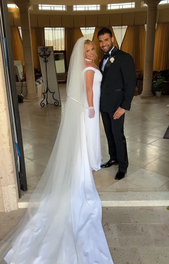 Britney Spears is a bride! The singer wore a custom Versace design for her wedding to her longtime partner Sam Asghari.