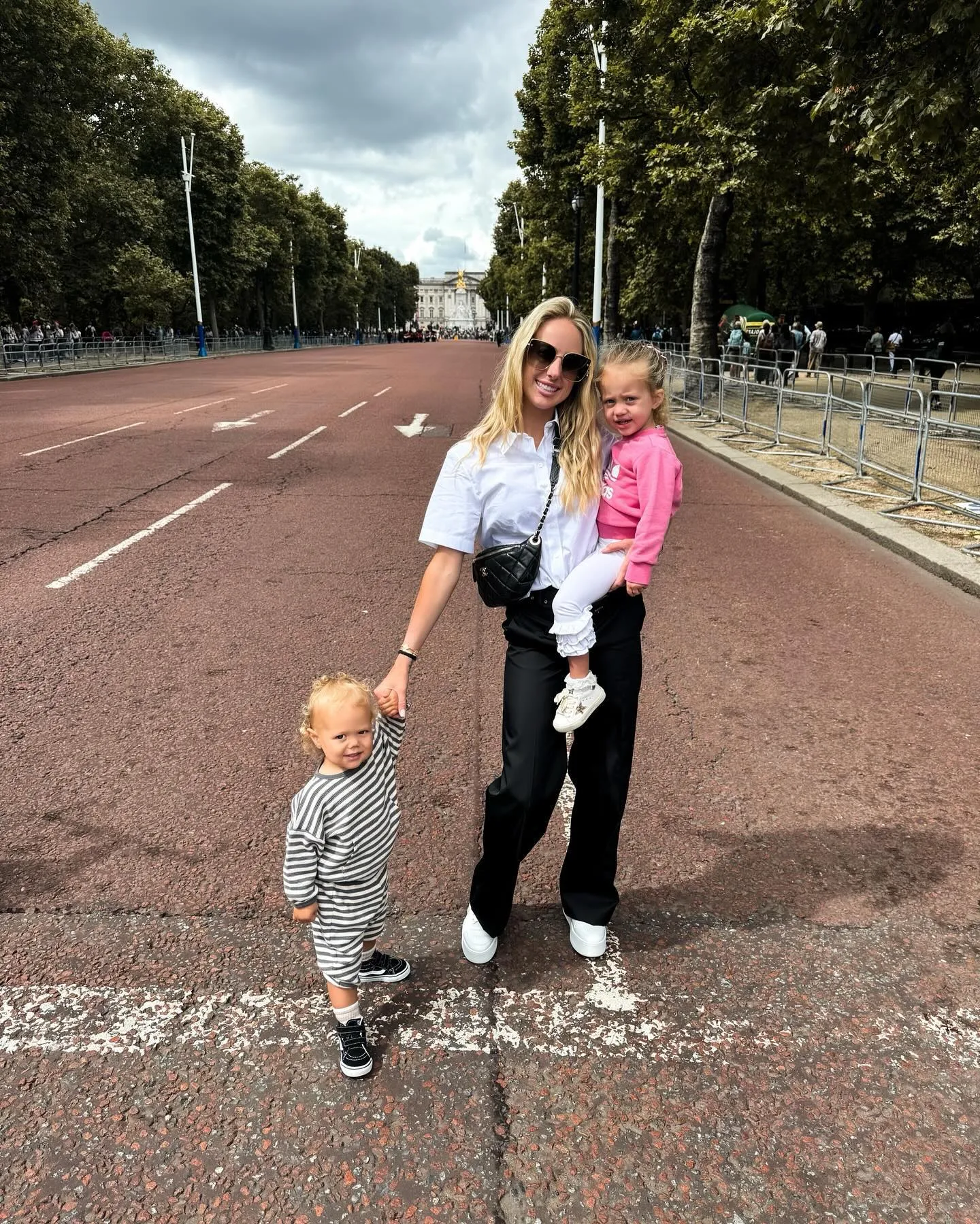 Brittany posed with Patrick, who wore a knit top and tan pants, as well as their two kids, daughter Sterling and son Bronze, who also wore all-white outfits.