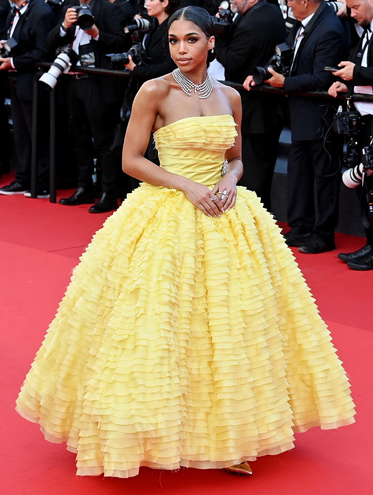 On Tuesday, May 17, Lori Harvey made her Cannes debut, channeling Disney’s “Belle” in a yellow, ruffled gown by Alexandre Vauthier at the screening of Final Cut (Coupez!).