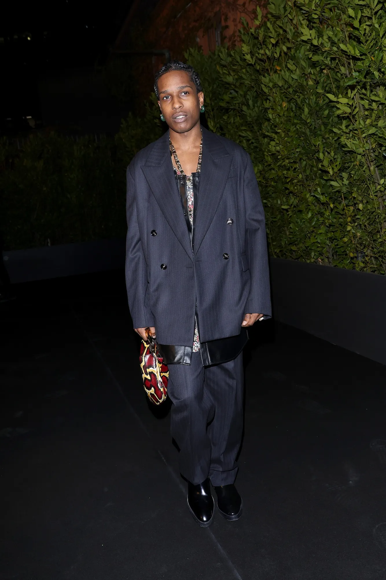 Rocky also opted to add a pop of color to his outfit while celebrating his 35th birthday in October 2023. After dining at New York City’s Carbone with Rihanna, with a bright pink woven bag by Bottega Veneta. He teamed the vibrant shoulder bag with loose denim pants, a plaid blazer and pearl clips covering his braids. Rihanna, meanwhile, slayed in a back tulle tutu dress and leggings.