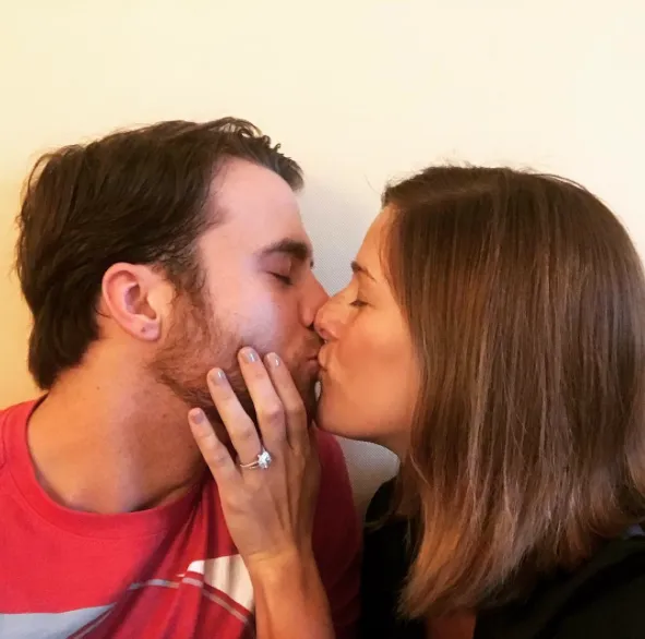 The Arrow actress' boyfriend, Matthew Rodgers, popped the question with an oval-shaped diamond ring. "I can't wait to spend forever with you my darling!!" she captioned an Instagram pic of the couple on June 5, 2017. "I'm the luckiest girl in the whole world. I [love] YOU to the moon and back @mattyice432 Thank you for a magical evening I will forever remember."