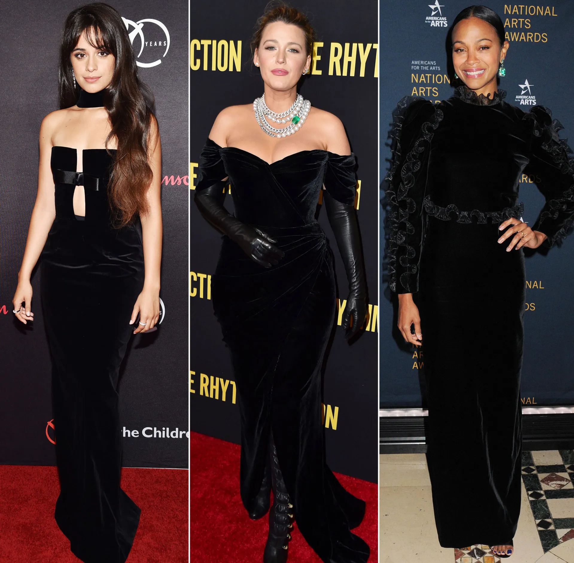 Scroll through to see how Blake Lively, Zoë Saldana, Naomi Watts and more wear their black velvet frocks on the red carpet.