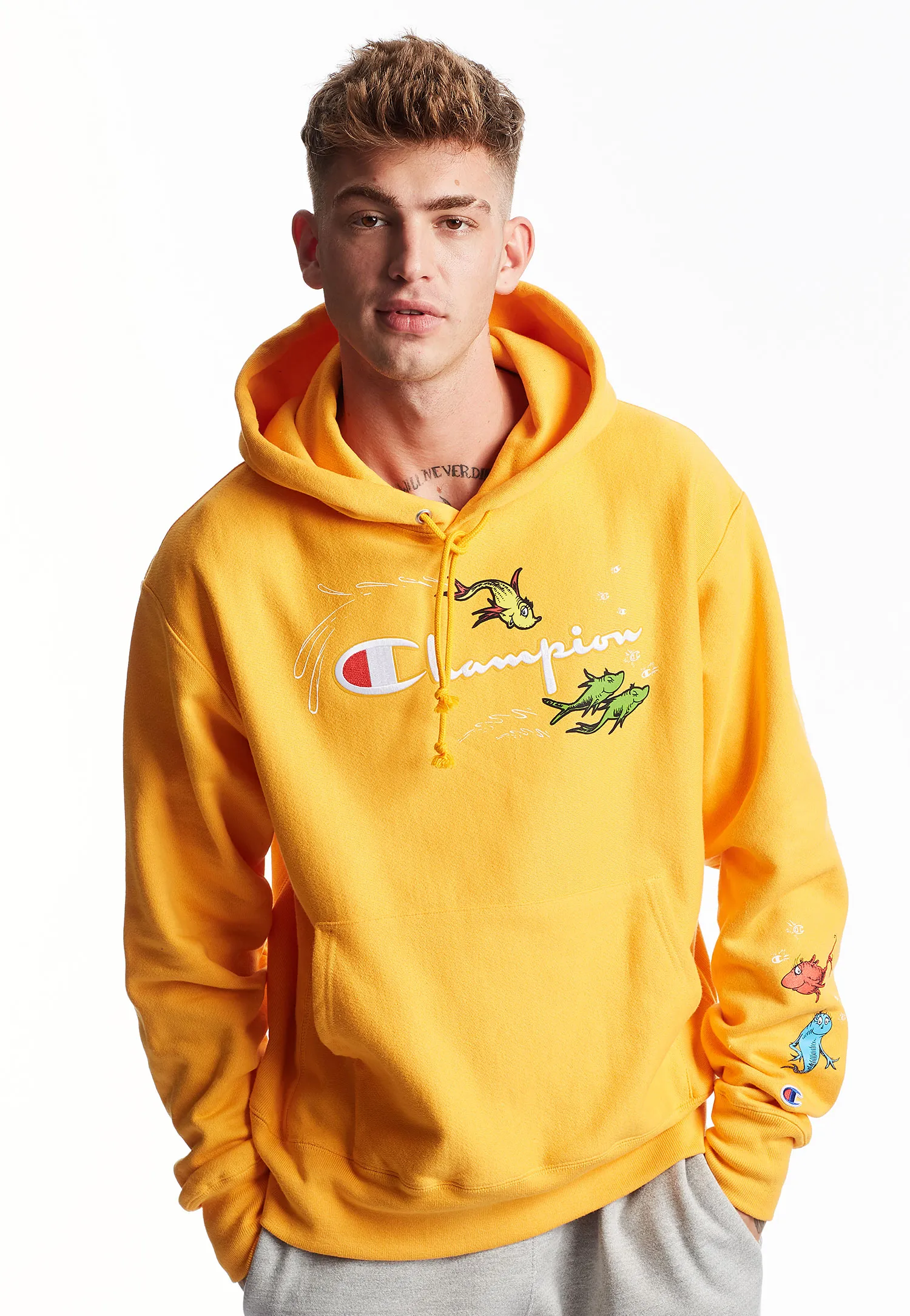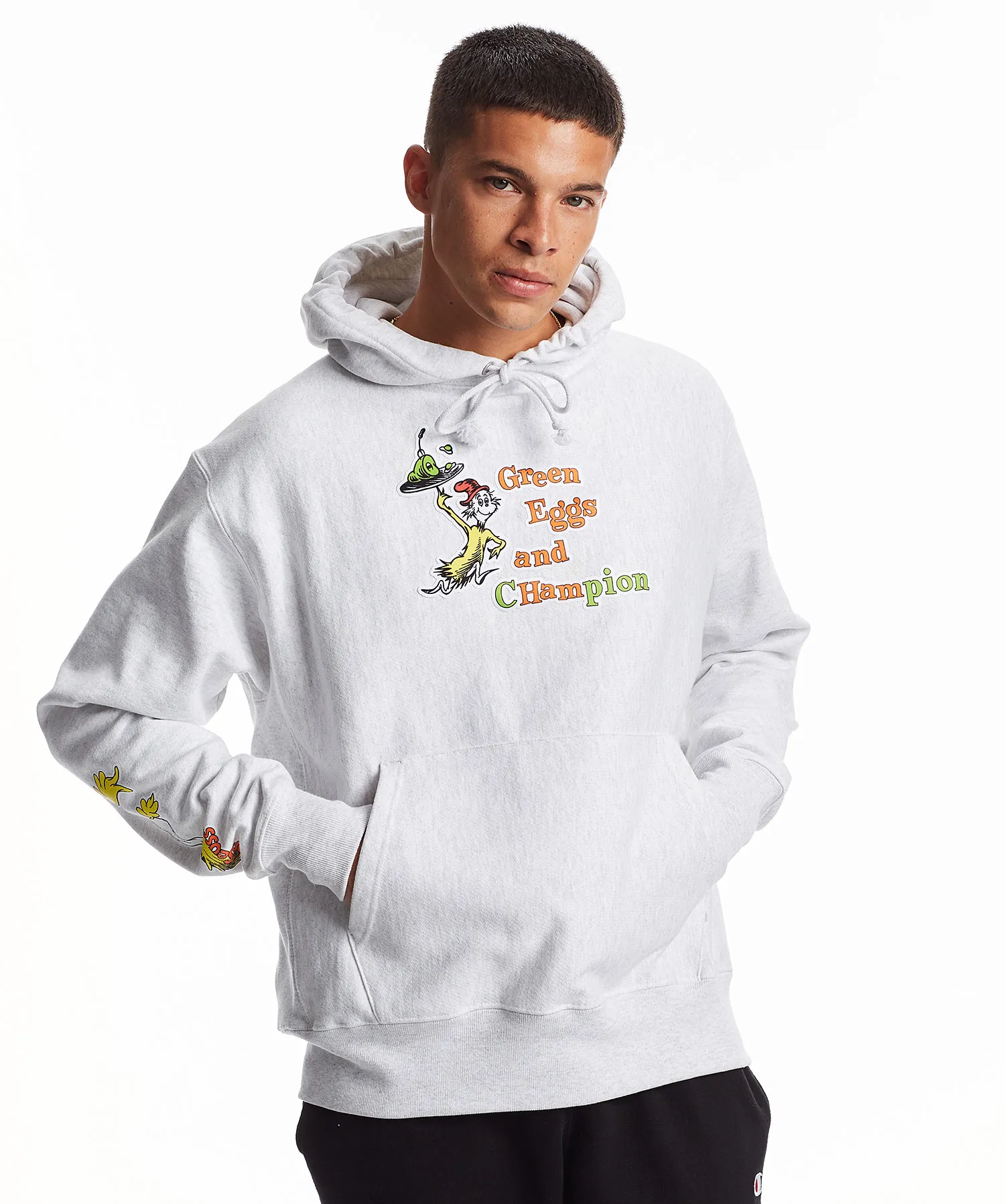 In today’s collabs you didn’t expect category, Champion Athleticwear just teamed up with Dr. Seuss to launch a limited-edition capsule collection that’s bound to make your day so much better. The brand announced the news via social media on Wednesday, October 2, with the clever rhyme, “You will wear it here and there, you will wear it everywhere! The special edition Champion x Dr. Seuss drop is available now!”