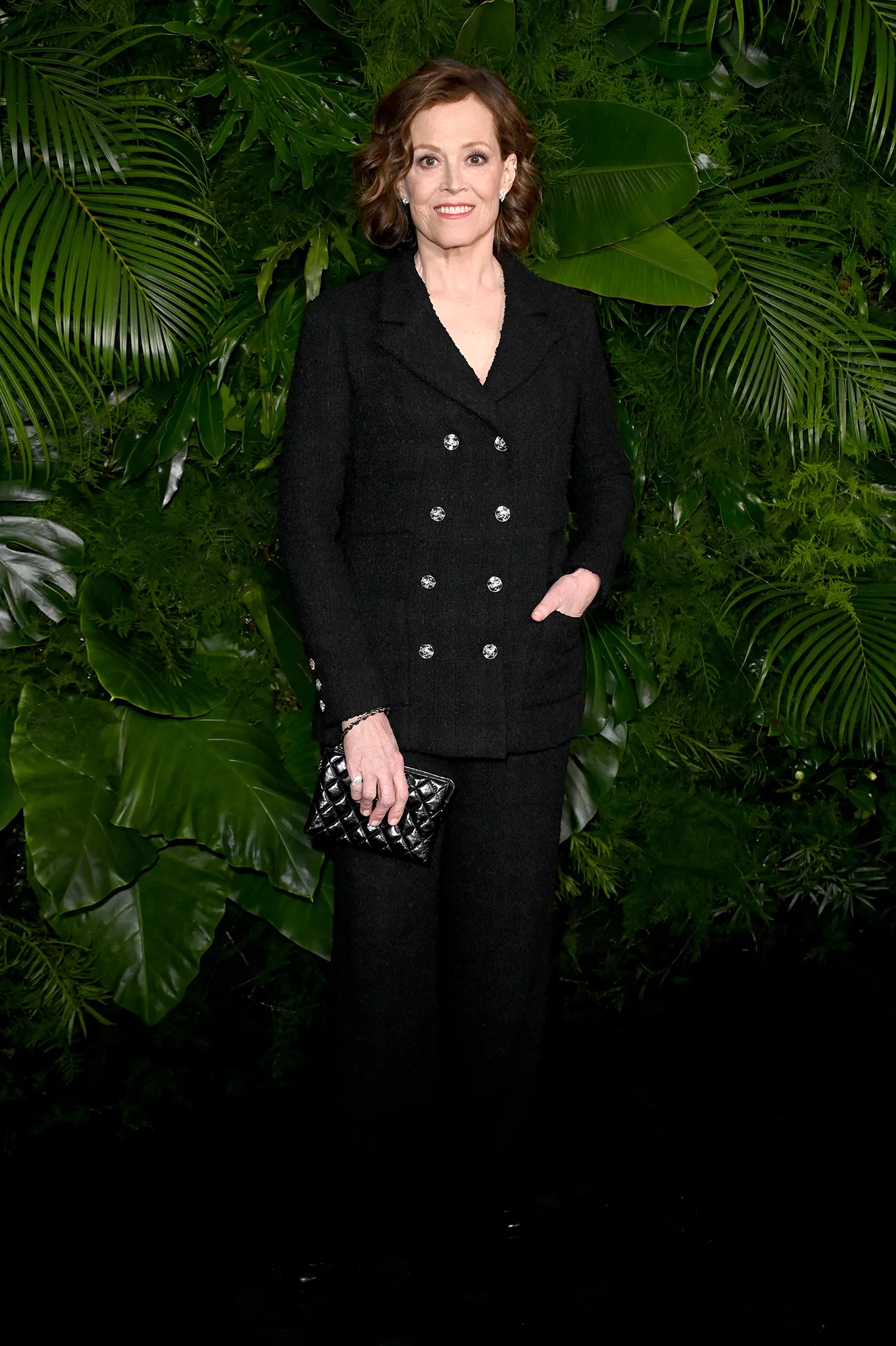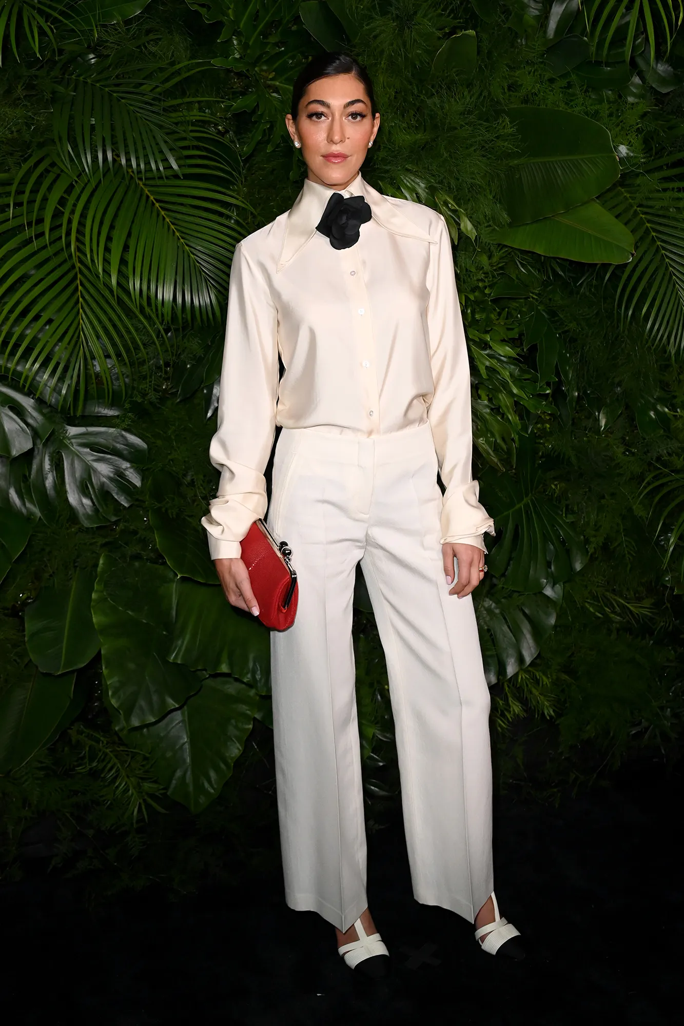 Elsewhere, Ariana DeBose posed in a full-length gown with v-neck and a chainlink belt to define her waist. Idris Elba also went for a black-on-black look with a matching shirt, jacket and trousers. Rita Ora wore Chanel leather pants with a lace top and a blazer draped over her shoulders. She added a tiny pop of color with a bold red lip.