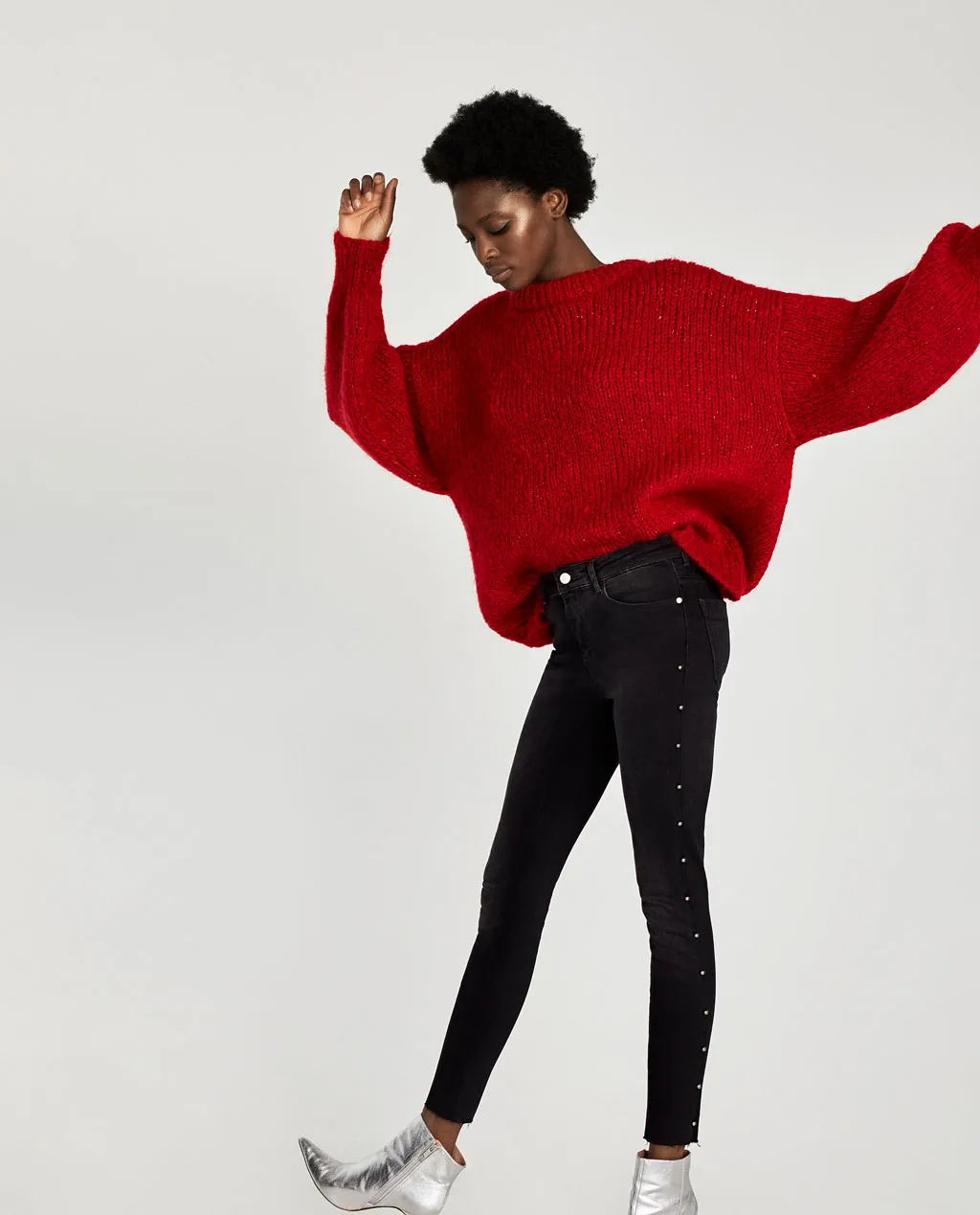 The embellishments on the seams and pockets of her black pants are the perfect way to spice up a staple. Scroll through to shop the look!