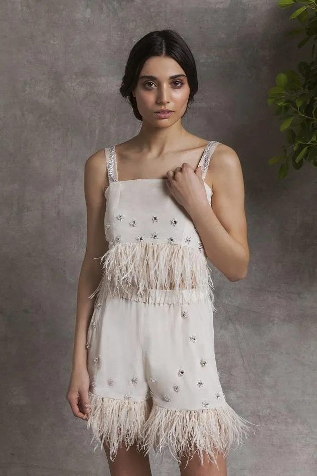 Turns out Dua’s high-octane gown isn’t just the thing of her dreams, but of our larger-than-life dreams, too. As it happens, feather embellished clothing, from gowns, shorts, crop tops and even accessories such clutches and shoes is incredibly trendy right now.