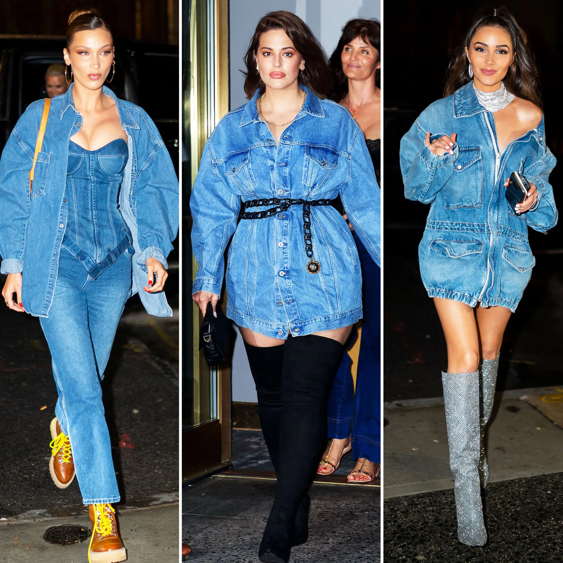 Other A-list attendees included Ashley Graham, who rocked a chain-belted oversized jean jacket, and Olivia Culpo, who wore her similar ensemble only with sparkly boots and a matching silver choker.