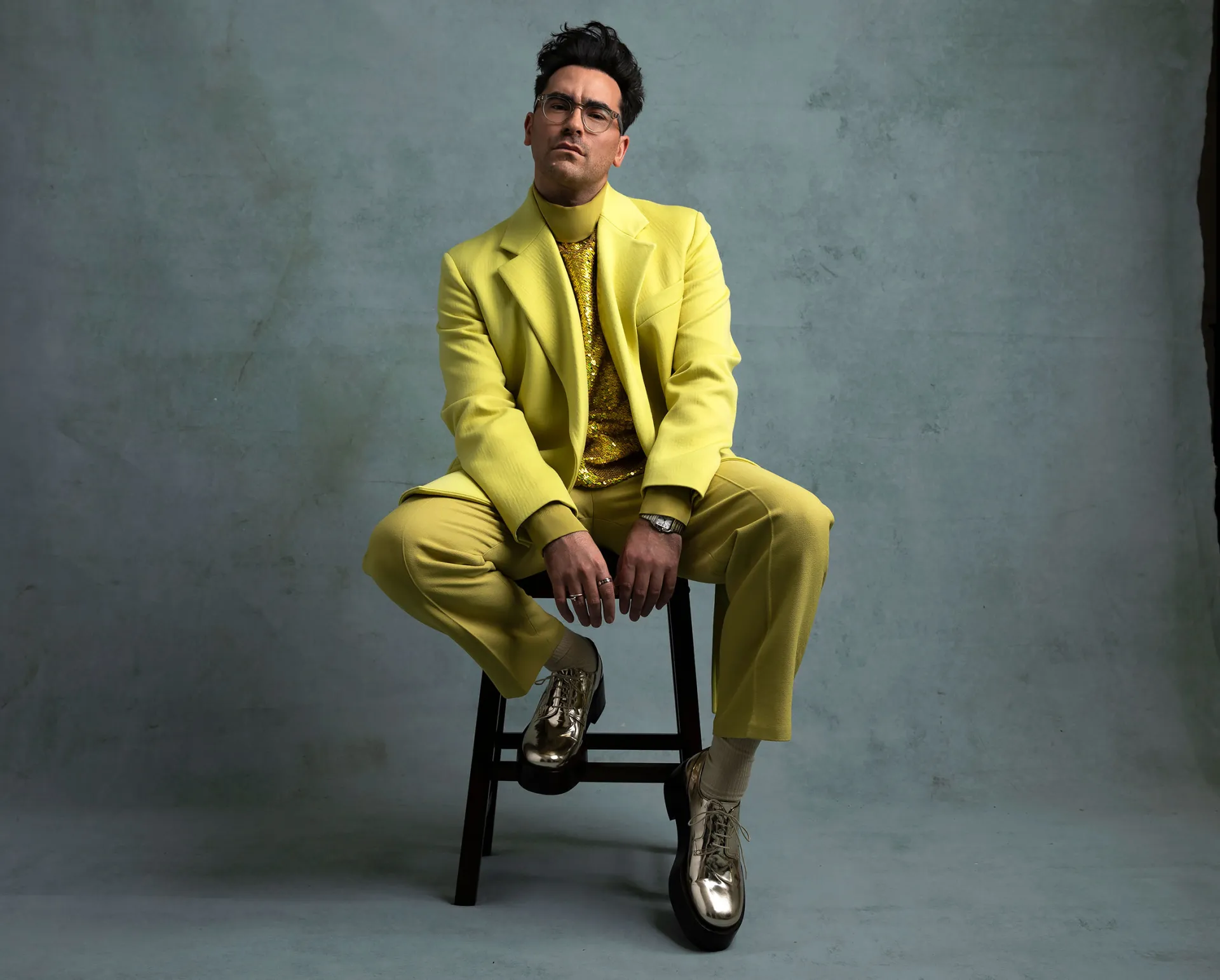 However, a few of the men choose to kick off the season with riskier ensembles. And let Us say, it paid off! Golden Globe nominee Dan Levy showed up rocking a chartreuse Valentino suit a la David Rose. He paired the bright blazer and pants with a sequin turtleneck and metallic silver platform shoes.