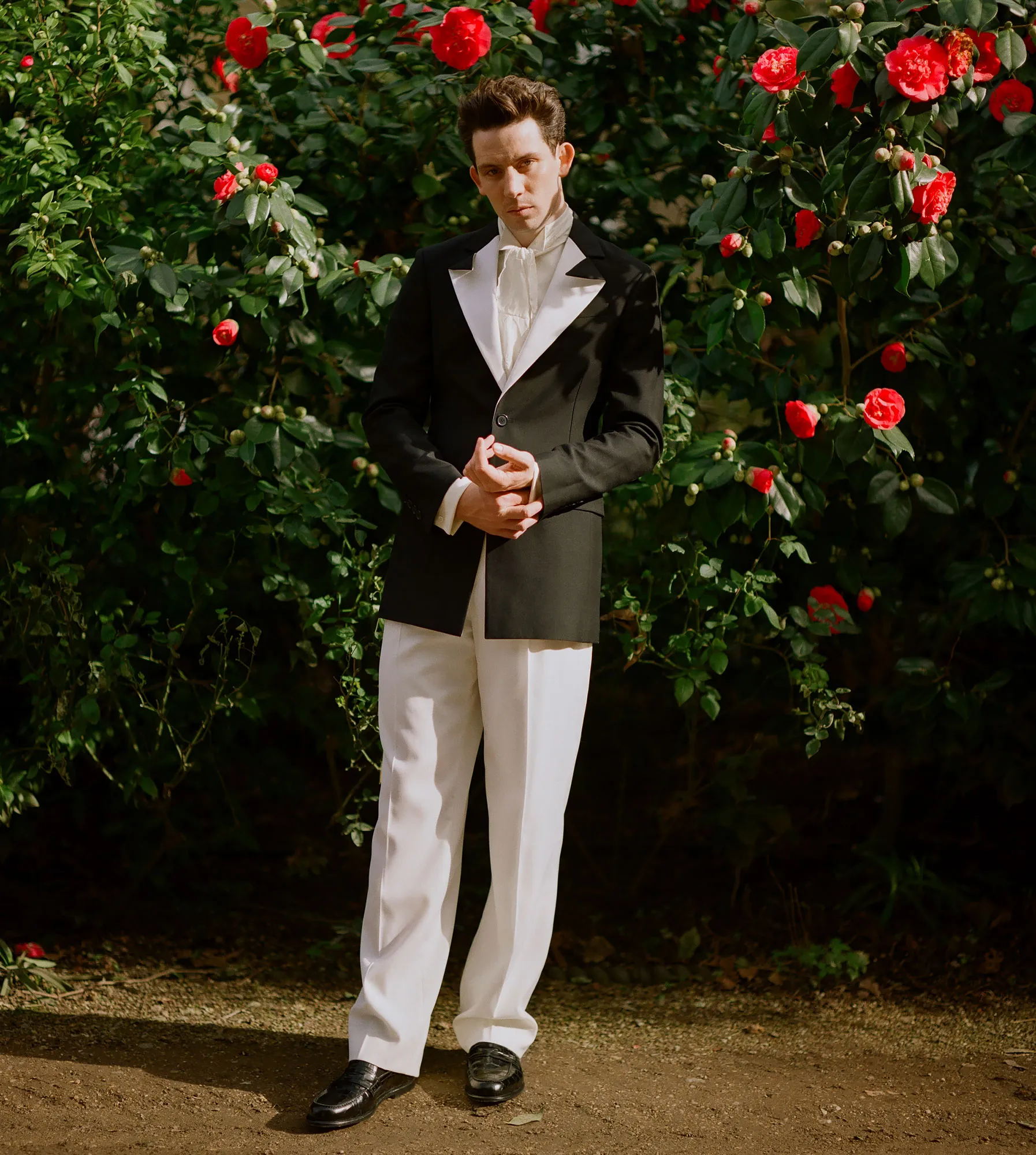 Another winner of the evening in more ways than one was The Crown’s Josh O’Connor, who won the Golden Globe for Best Actor in a Drama TV Series. He was dressed like royalty in a Loewe suit, which featured white pants and a black jacket with white lapels.