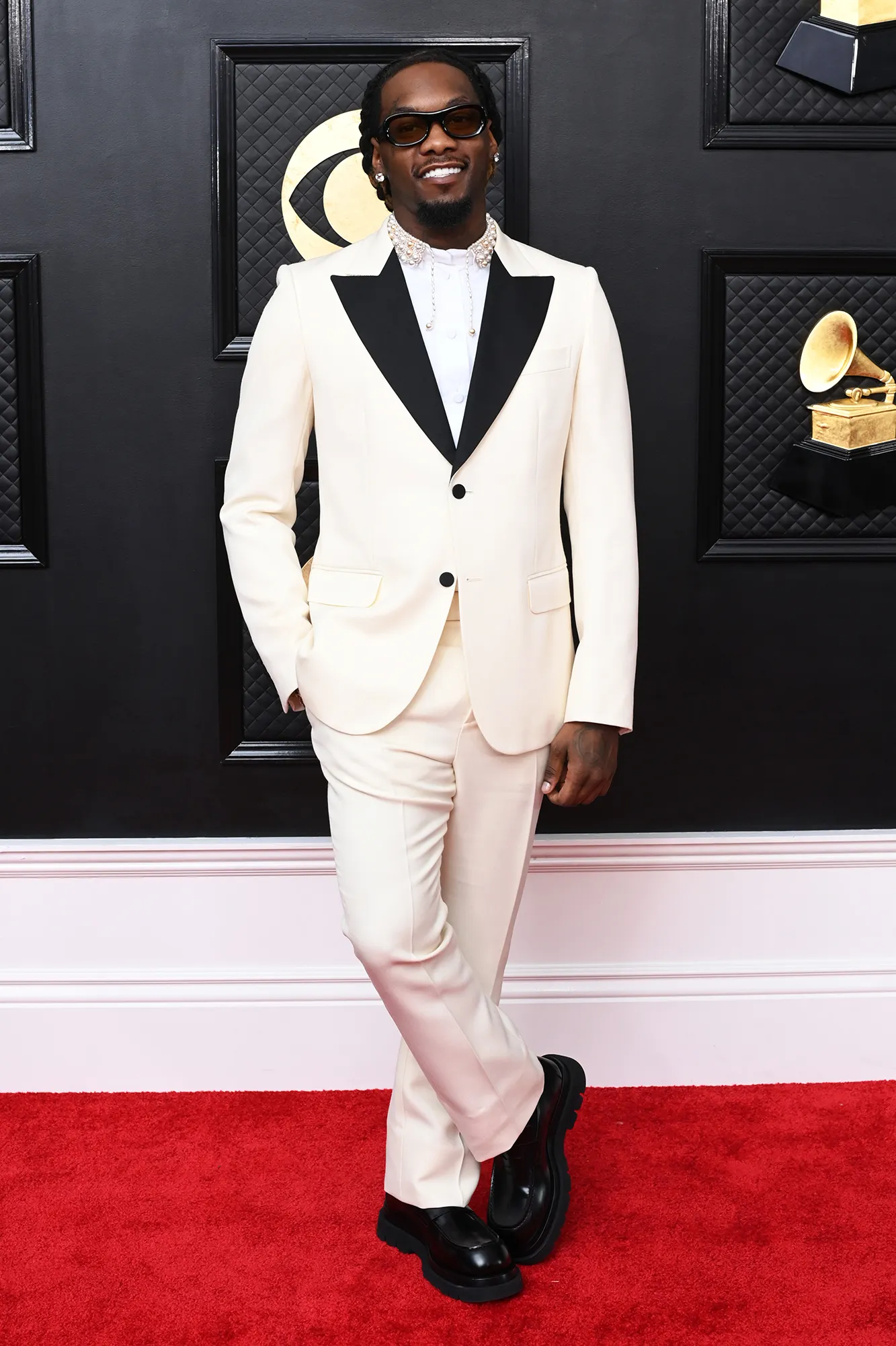 A handful of dapper dudes including Trevor Noah, Offset and Dwayne Johnson all rocked sleek suits. Harry Styles, nominated for multiple awards including Record of the Year, Album of the Year, Song of the Year and more for his album Harry’s House, wore a gorgeous ensemble by Egonlab. The “Adore You” singer took home the trophy for Best Pop Vocal Album and Album of the Year.