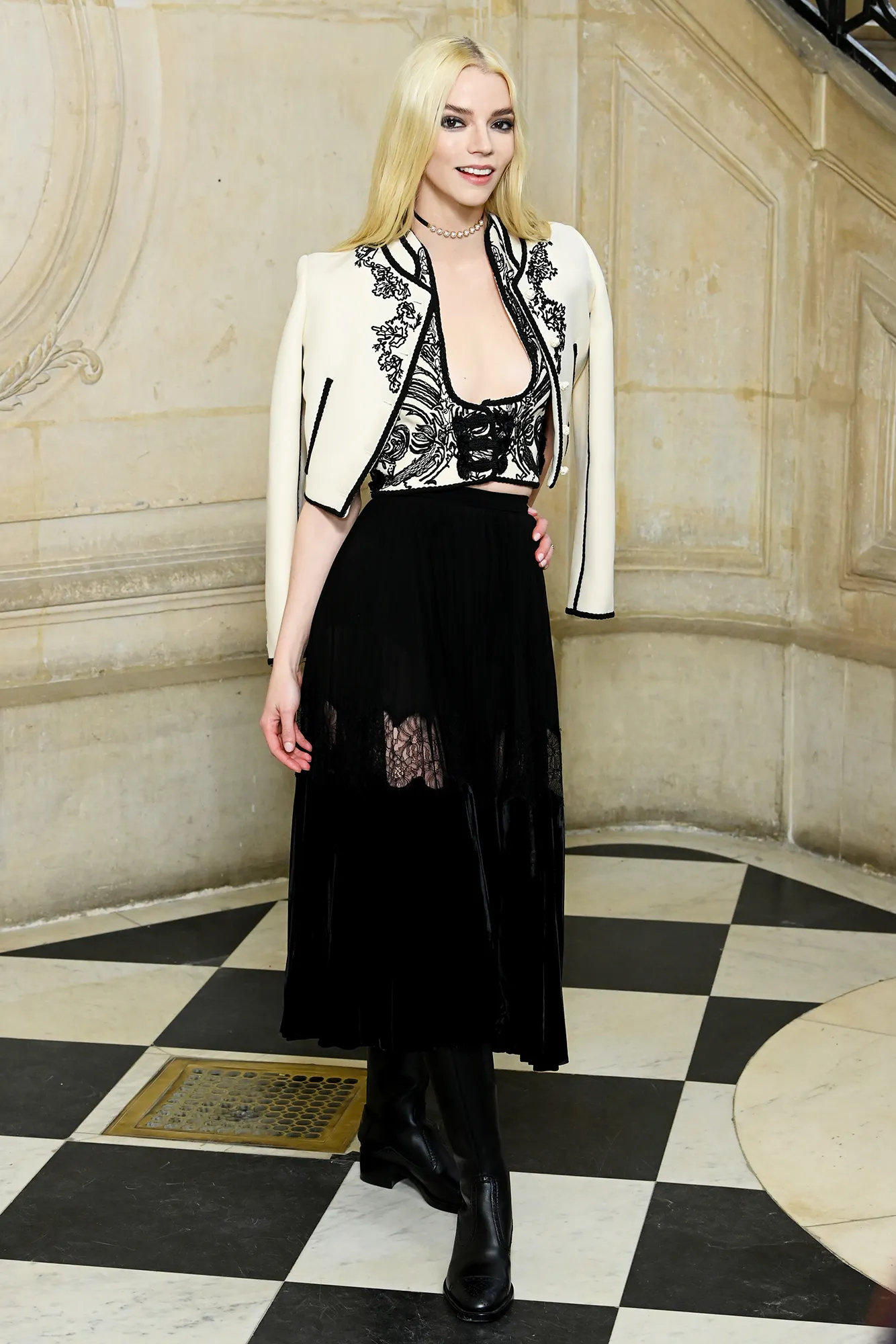 Later on Monday, Dior hosted its presentation. Karlie Kloss was among the many A-list guests who stopped for a photo before the event. The supermodel, 30, looked radiant in a red maxi dress paired with a red coat and black ballerina flats. Yara Shahidi was a vision in a tulle mini dress that was equipped with a delicately woven bodice. The Grown-ish actress, 22, paired the frock with pointed-toe pumps and soft glam. (The fashion house named Shahidi as its global ambassador for beauty and fashion in July 2021.)