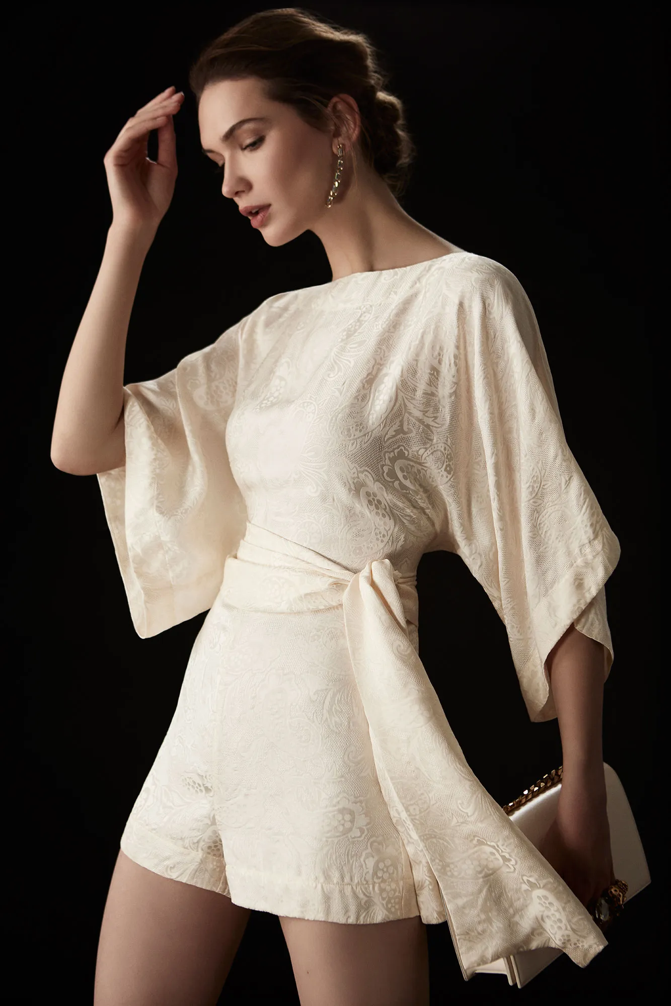 Take, for instance, the strapless, wide-leg Solace London style that would make the ultimate wedding dress-alternative for a bride looking for something other than a white dress. It’d also be fun piece to dance the night away in at a reception or rock at a bridal shower. WARM, meanwhile, created an ivory silk romper that has beach wedding (or tropical honeymoon!) written all over it.