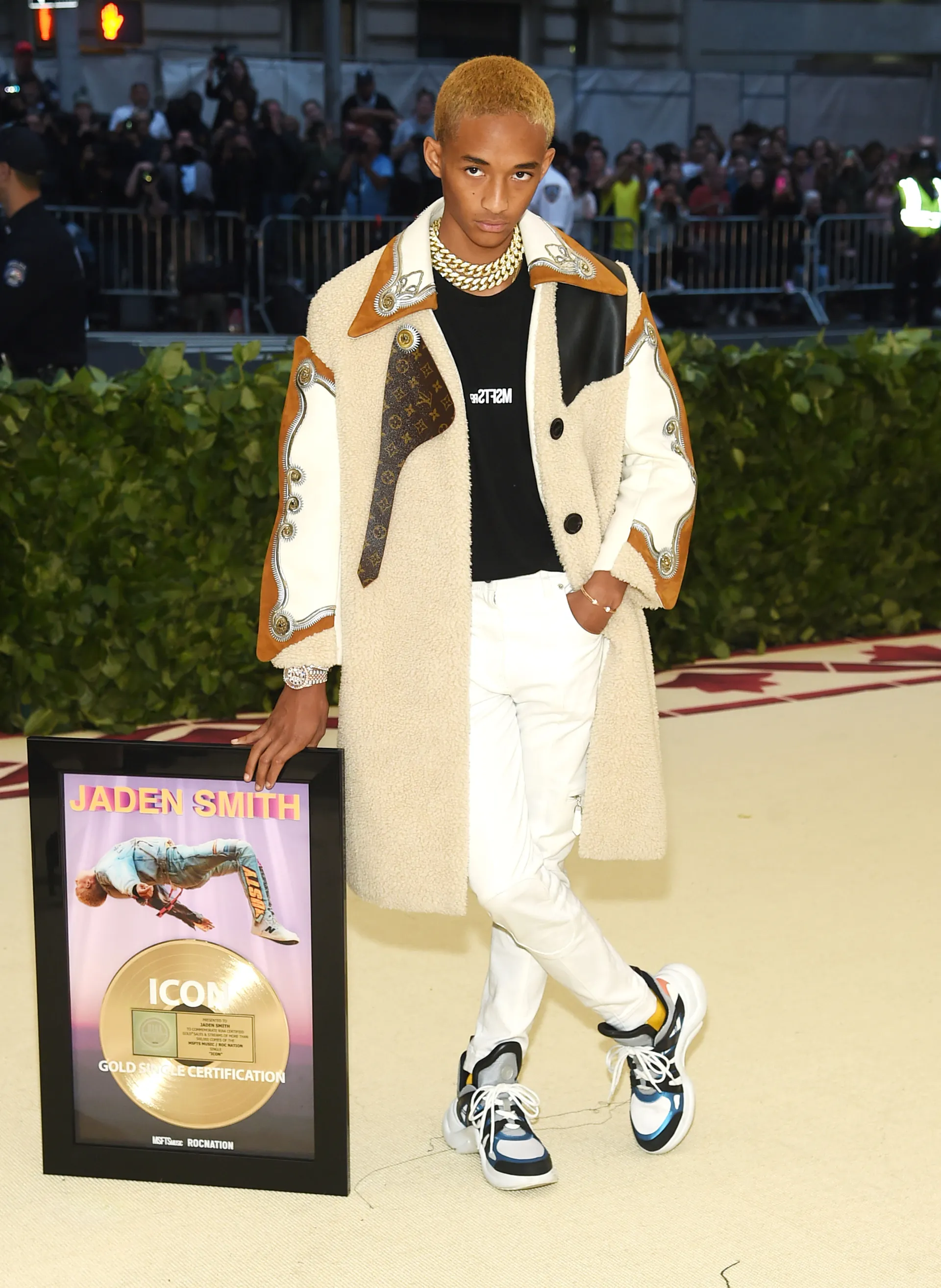 And you can see this creative flair play out in very unexpected ways. Often seen wearing androgynous outfits, his gender-fluid style was embraced by powerhouse Louis Vuitton who’ve made him the face of their womenswear collection in 2016. Jaden slayed in the campaign in which he modeled a skirt alongside other models. When he isn’t working it for high-end labels, he’s out indulging in his wildly unique fashion choices. In fact, he’s the king of wacky accessories – after all, he’s hit red carpets with certification plaques, bundles of real hair in hand and even an iguana!