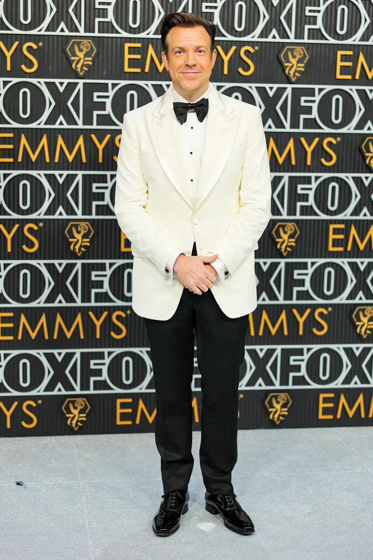At the 81st annual Golden Globes in January 2024, the Ted Lasso star sported a chocolate brown suit and purple sweater. Sudeikis accessorized with a white pocket square. He parted his brunette hair down the side and gelled a few strands up. Sudeikis’ facial hair featured a mustache and a manicured soul patch.