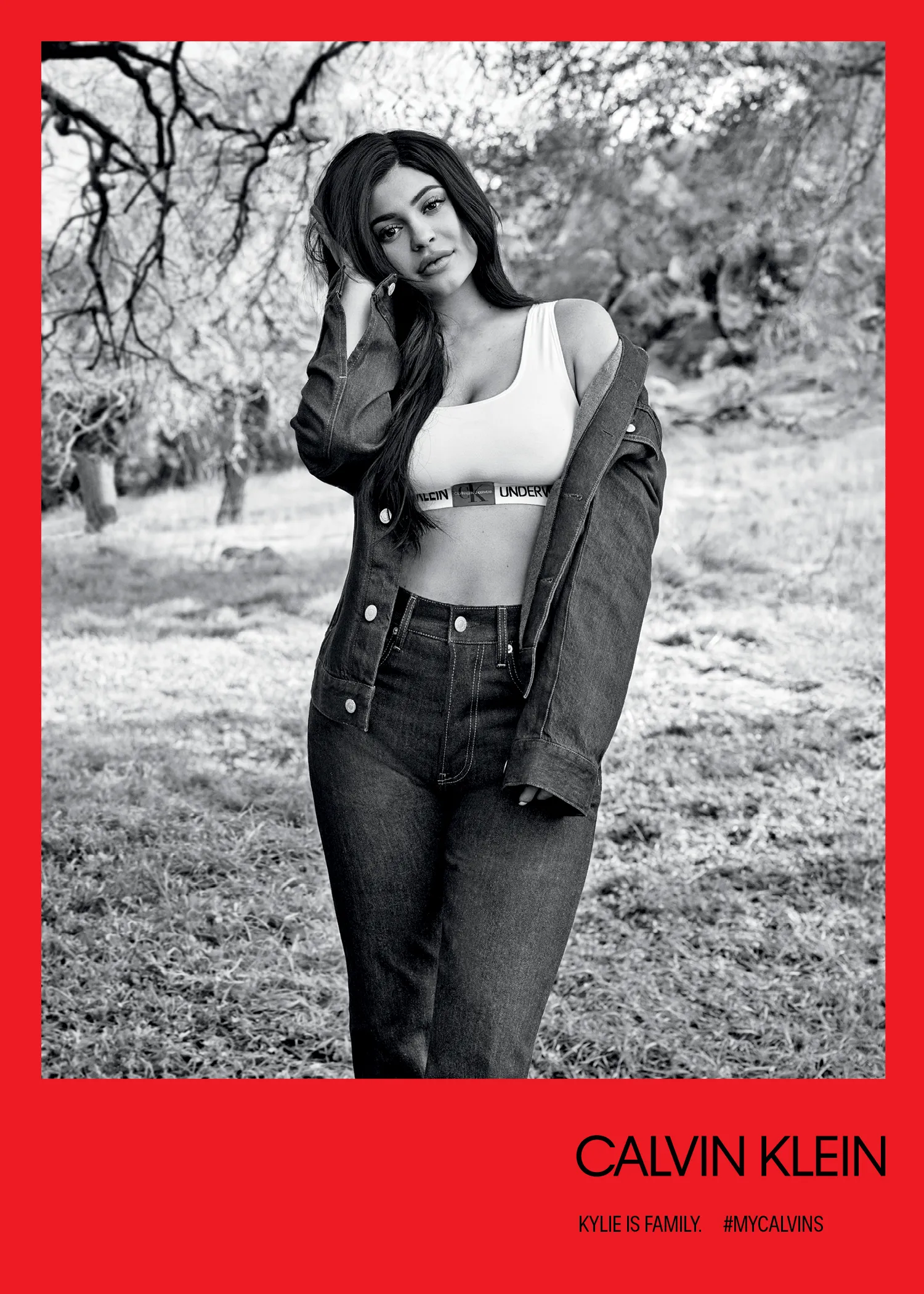 Shot in black and white by photographer Willy Vanderperre and videographer Shane Sigler at a ranch in Thousand Oaks, California, in March 2018, the tight-knit clan enjoyed lots of laughs and gossip sessions on-set in between takes. In addition to slipping into bras and panties adorned with a “CK” logo that serves as an homage to the brand’s OG monogram, Kendall and Kylie also sport dark wash denim looks that will be perfect once the seasons begin to change.