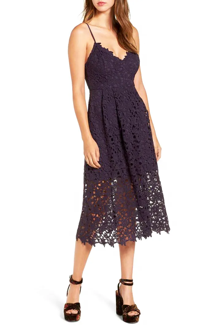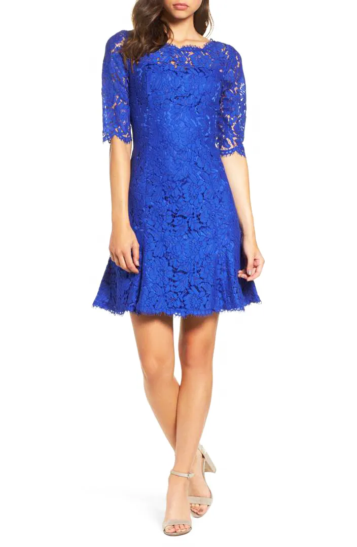 One day after stepping out in a gorgeous emerald green Jenny Packham gown for the 2018 BAFTA Awards, Kate Middleton continued her fabulous pregnancy style streak wearing a demure lace Erdem mididress to the Commonwealth Fashion Exchange reception at Buckingham Palace on Monday, February 19. To greet famous fashion faces like Naomi Campbell, Anna Wintour and Stella McCarthy, the Duchess of Cambridge, who is expecting her third child, chose a bespoke maternity version of Erdem’s Suzi dress, which retails for a cool $2,975. If you’re like Us and looking to recreate Middleton’s springtime style sans the $3,000 price tag, we’ve tracked down nine equally chic options that all ring in at under $100. Keep scrolling for our favorite lace dresses under $100!