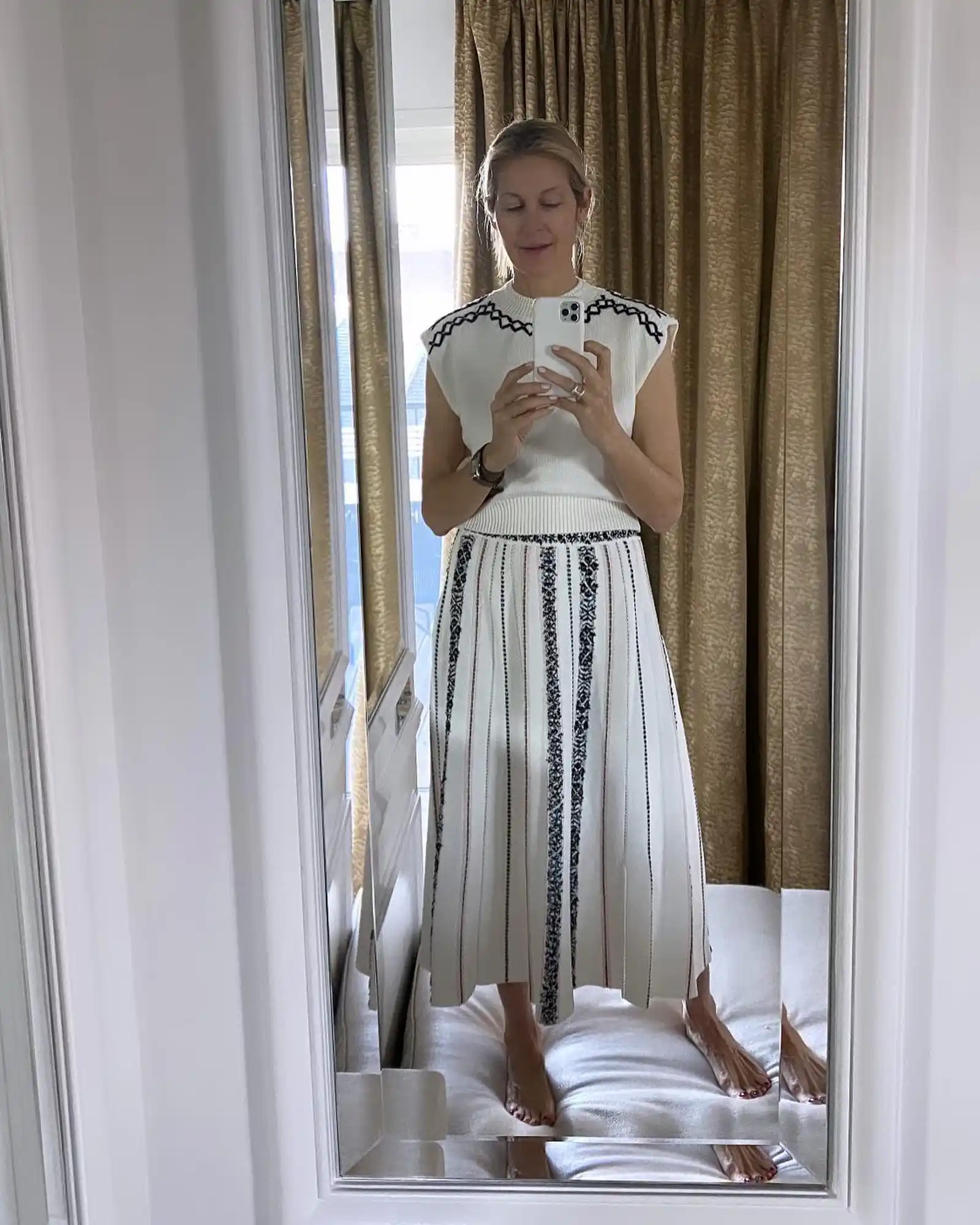 The Gossip Girl alum has mesmerized Us with her wonderful wardrobe via mirror selfies — which would certainly be approved by her fashion-obsessed character Lily van der Woodsen. From long coats and fuzzy sweaters to joggers and plaid skirts, Rutherford always slays.