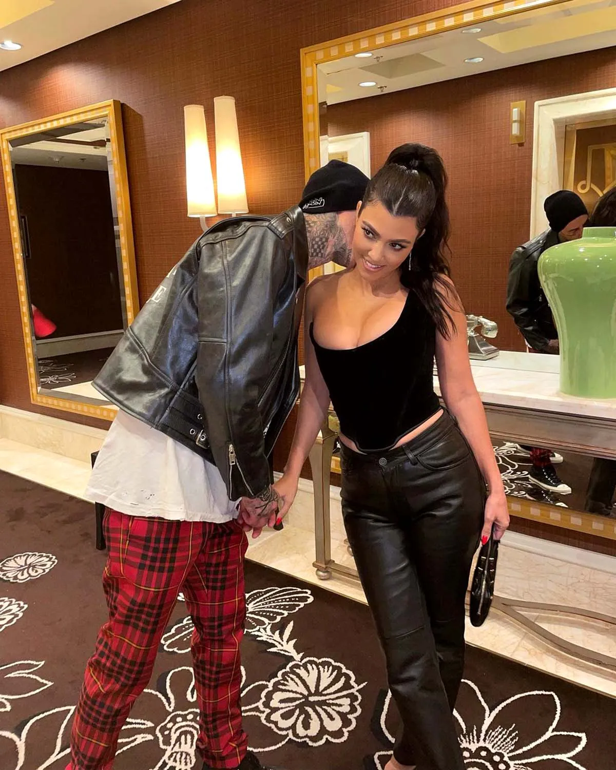 Kourtney Kardashian and Travis Barker’s couple style is just as hot and heavy as their whirlwind romance. From leather jackets and latex tops to low-slung pants and graphic tees, the duo has proved that no matter the occasion they’re going to turn up the heat.
