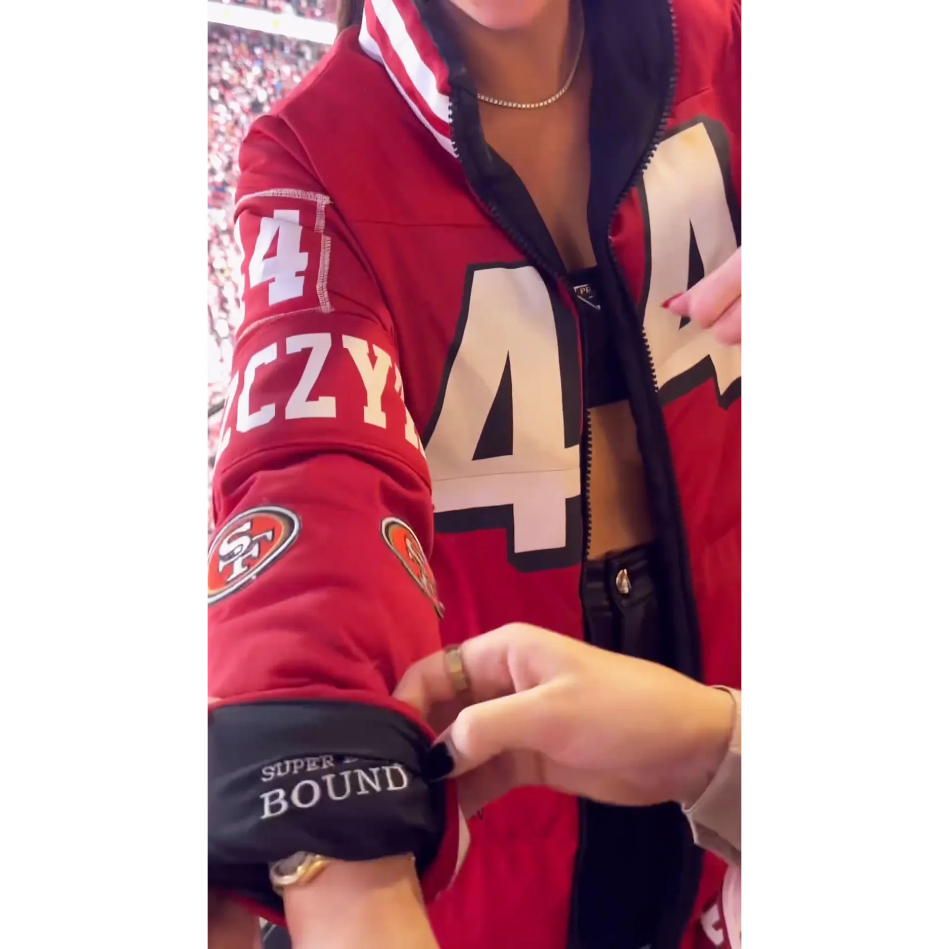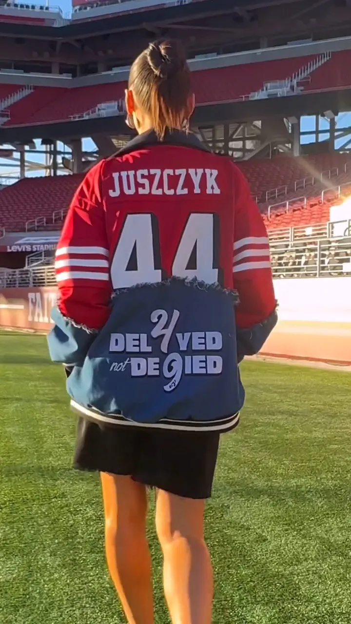 Kristin, who married the San Francisco 49ers fullback in 2019, is known for repurposing team jerseys and other gear into chic outfits.