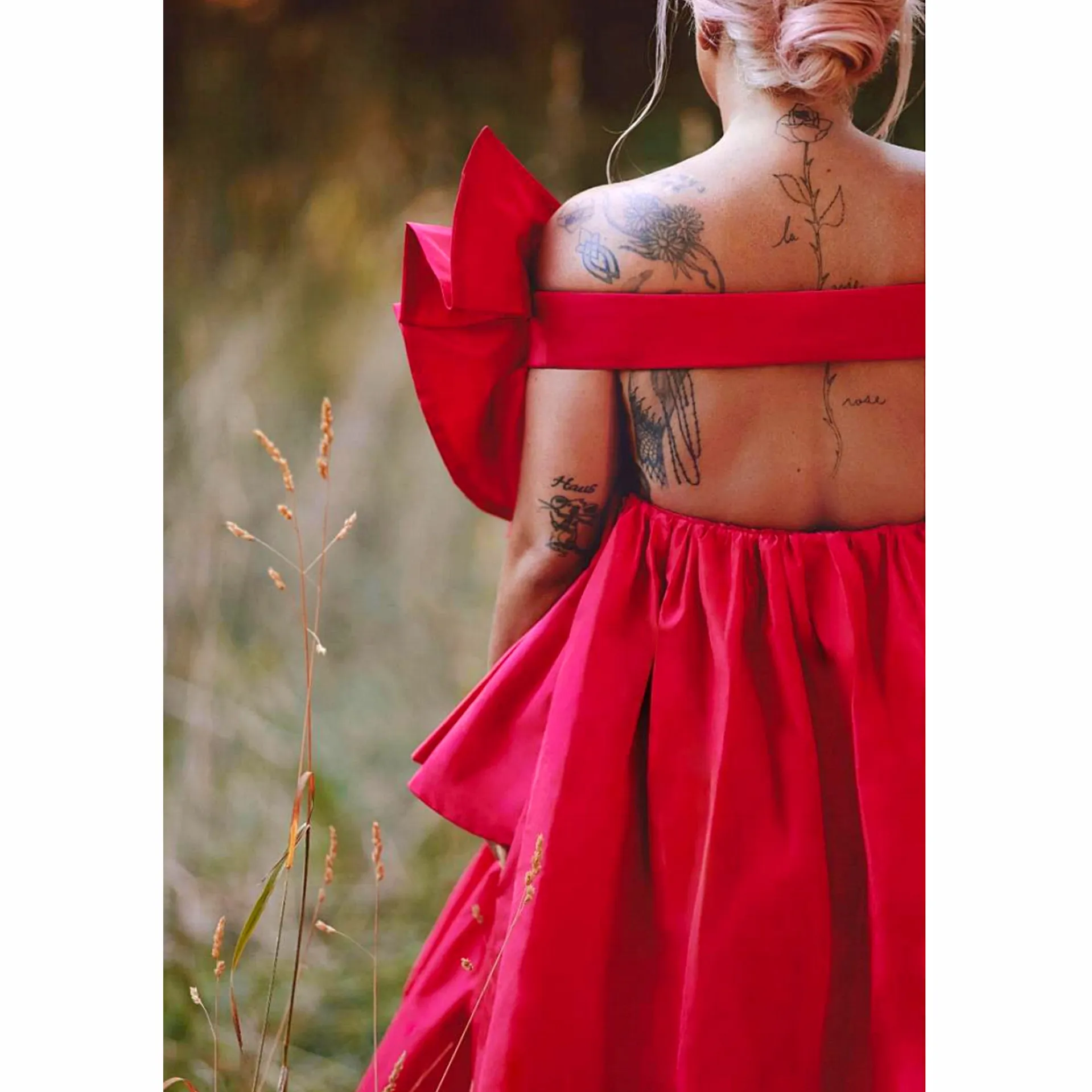 “I felt strong and alive, hearing myself echo through the forest as I was singing in this dress,” she said in a statement from the brand “It reminded me of my freedom and how I get to experience magic, a freedom and magic I wish everyone to have.”