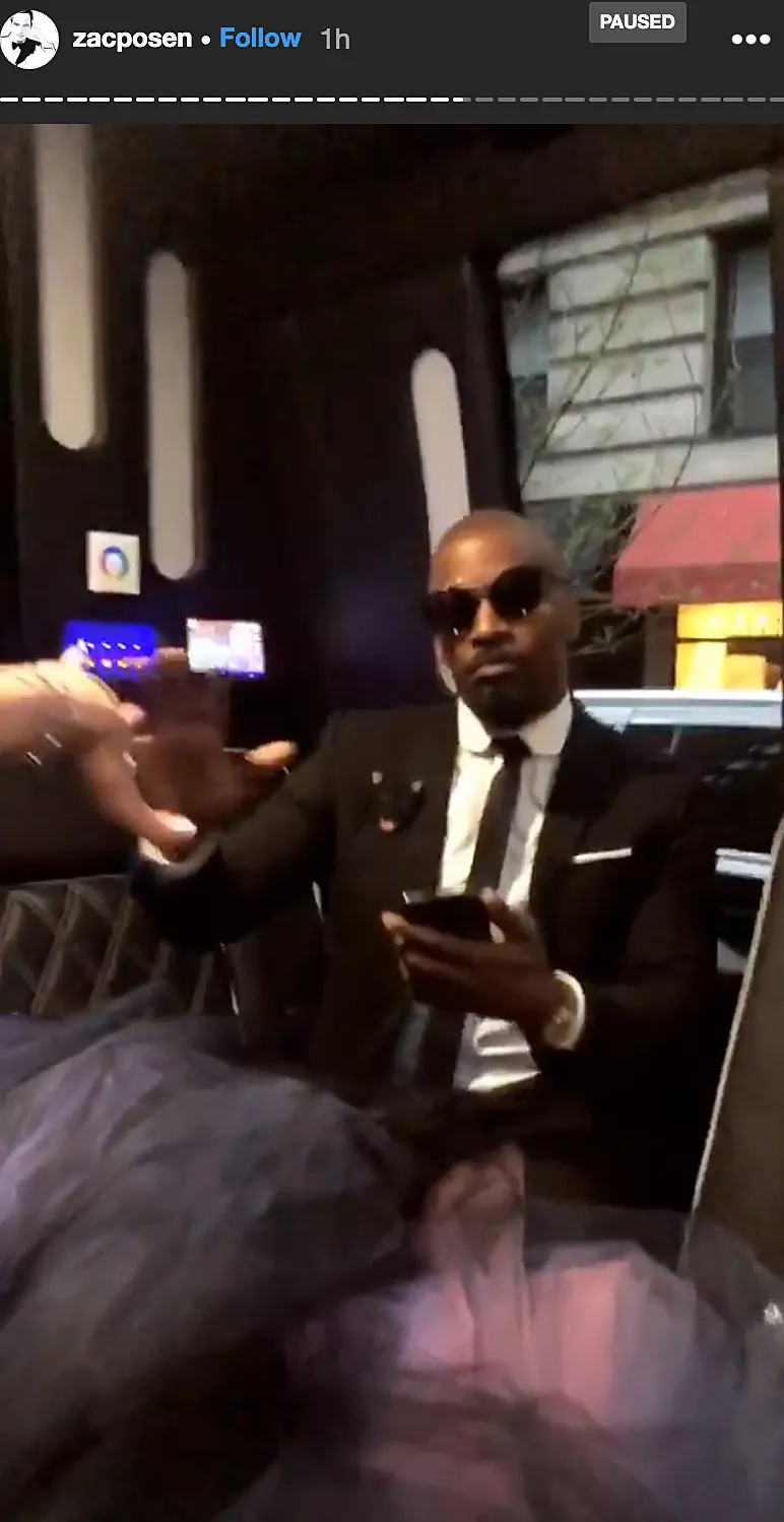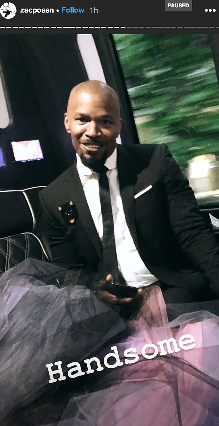 Posen, 38, documented a limo ride to the event at the Metropolitan Museum of Art’s Costume Institute in New York City on his Instagram Stories that showed the Dawson’s Creek alum, 40, and Foxx, 51, dancing and laughing. Though the notoriously private couple didn’t pose together, Holmes’ gorgeous purple dress could be seen draped over the knee of the Robin Hood actor in one snap.
