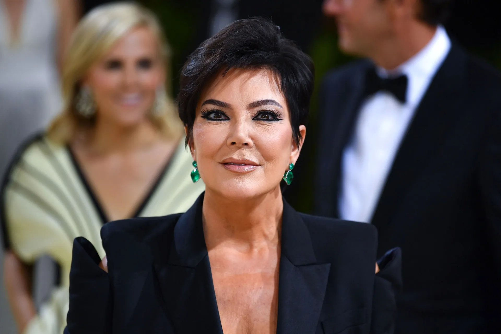 “Excited!” the talent manager, 65, told E! News of her youngest daughter’s upcoming arrival as she showed off her Tom Ford, McQueen and Judith Leiber look, along with Lorraine Schwartz emerald earrings, posing with boyfriend Corey Gamble. “No. 11! Really great!”