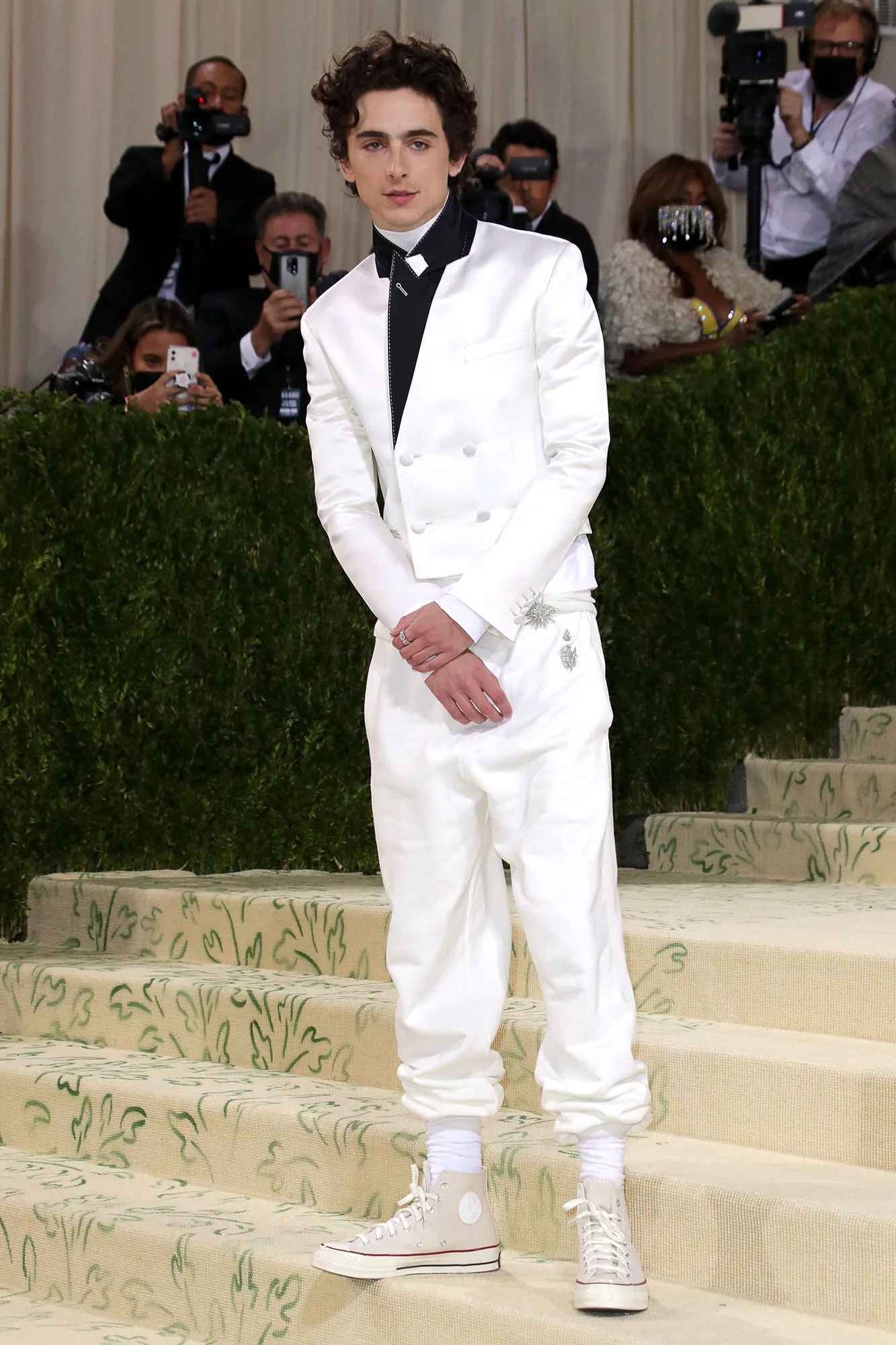 The Call Me By Your Name star, 25, arrived at the event in a white suit designed by Haider Ackermann. In a seeming nod to this year’s theme — “In America: A Lexicon of Fashion” — the actor paired his look with classic white Chuck Taylor high-tops.