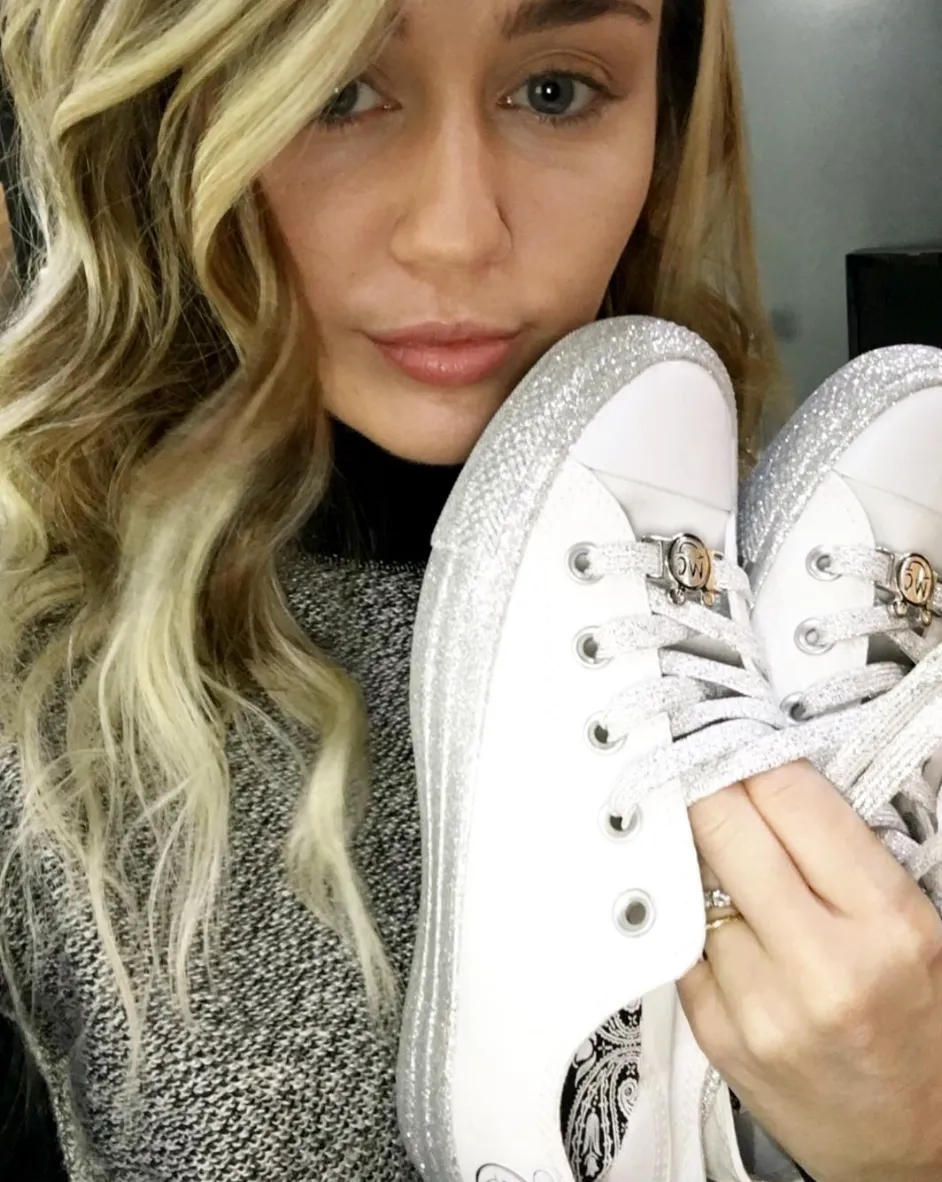 Whether you’re a high tops or low tops kind of gal, no one can deny the enduring cool of a pair of Chuck Taylors. And now it appears as though the cult-favorite sneaker will be getting a seriously cool update courtesy of Miley Cyrus. We were first tipped off about the collection when the Malibu singer took to Instagram in November 2017 to share some behind-the-scenes snaps of her glittery high top, low top and platform designs. She upped the ante on Sunday, February 11, when she shared some additional pics of herself modeling the forthcoming kicks on social media. A launch date for the collaboration has not been confirmed, but Cyrus told her followers that “MC x Converse” is “coming soon.” While we anxiously await its arrival, keep scrolling to see all the designs Cryrus has shared a sneak peek of so far!